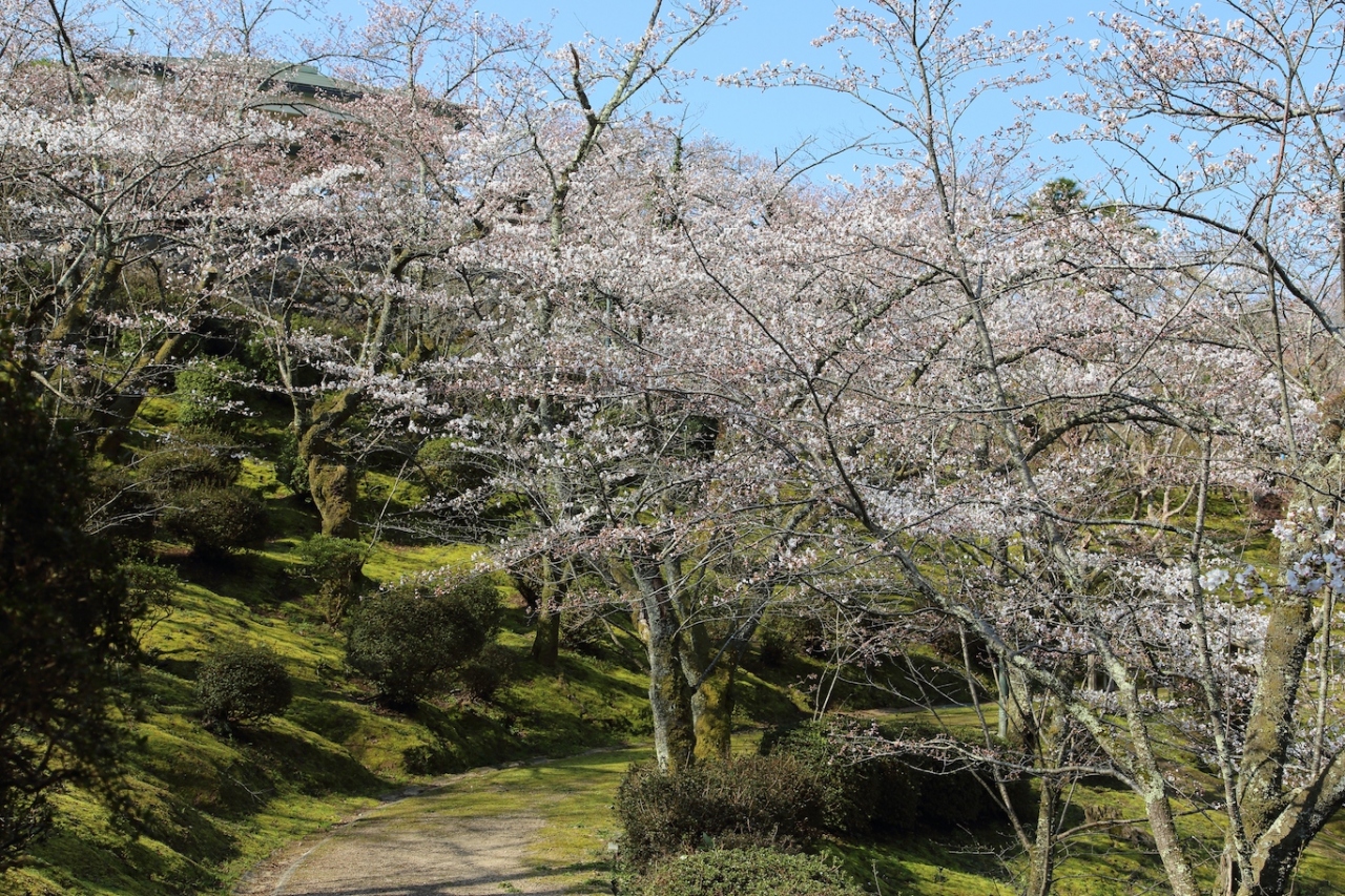国指定名勝になっているだけあり、小ぢんまりとはしていましたが、築山に滝、池に島と日本庭園に必要な要素は一通りは揃っており、綺麗な庭園でした。ただ、遊歩道は庭園のサイズに合わせて結構細いので、家族や友人と連れだって行くと結構歩きにくいと思います。あと、築山への石段は苔に覆われていて滑りやすいので、ご注意ください。