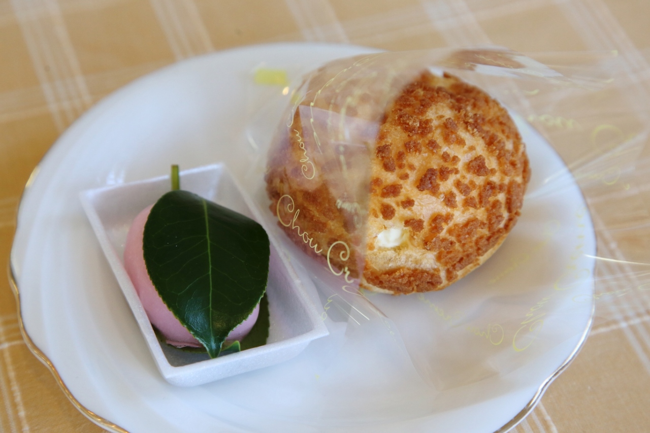 ただ、でっかいシュークリームにばかり目が行きますが、こちらは和菓子も美味しいです。つばき餅という和菓子を販売されていますが、こちらは昭和天皇にも献上されたお菓子で、白あんをピンクの求肥でくるみ、椿の葉で挟んだ見た目も美しいお菓子です。味も見た目に違わず、非常に美味でした。