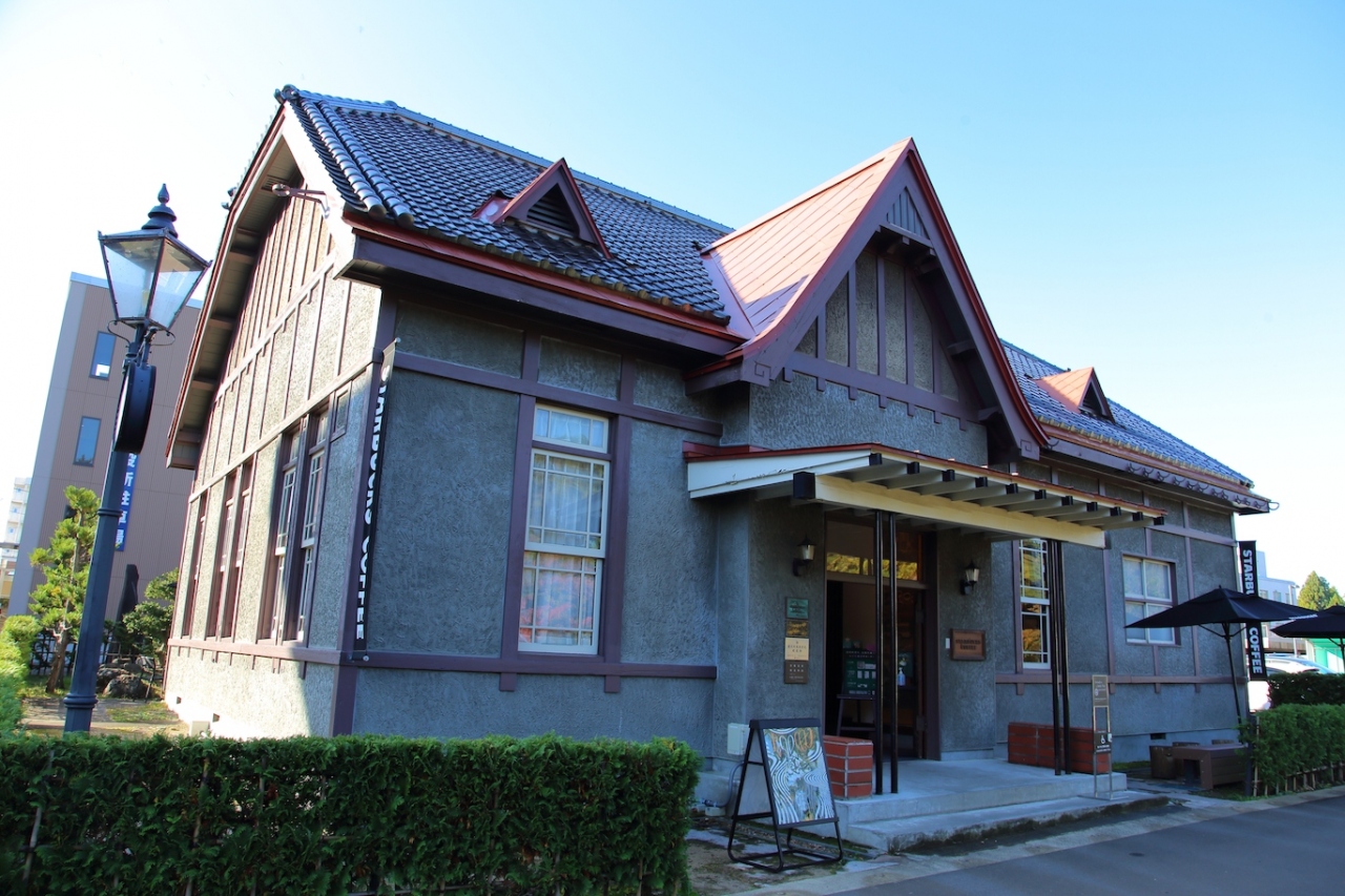 弘前市役所の西隣、弘前城大手門のすぐ南にあるスターバックスです。店舗は旧日本陸軍の第八師団長官舎だった建物で、国の登録有形文化財にも指定されています。