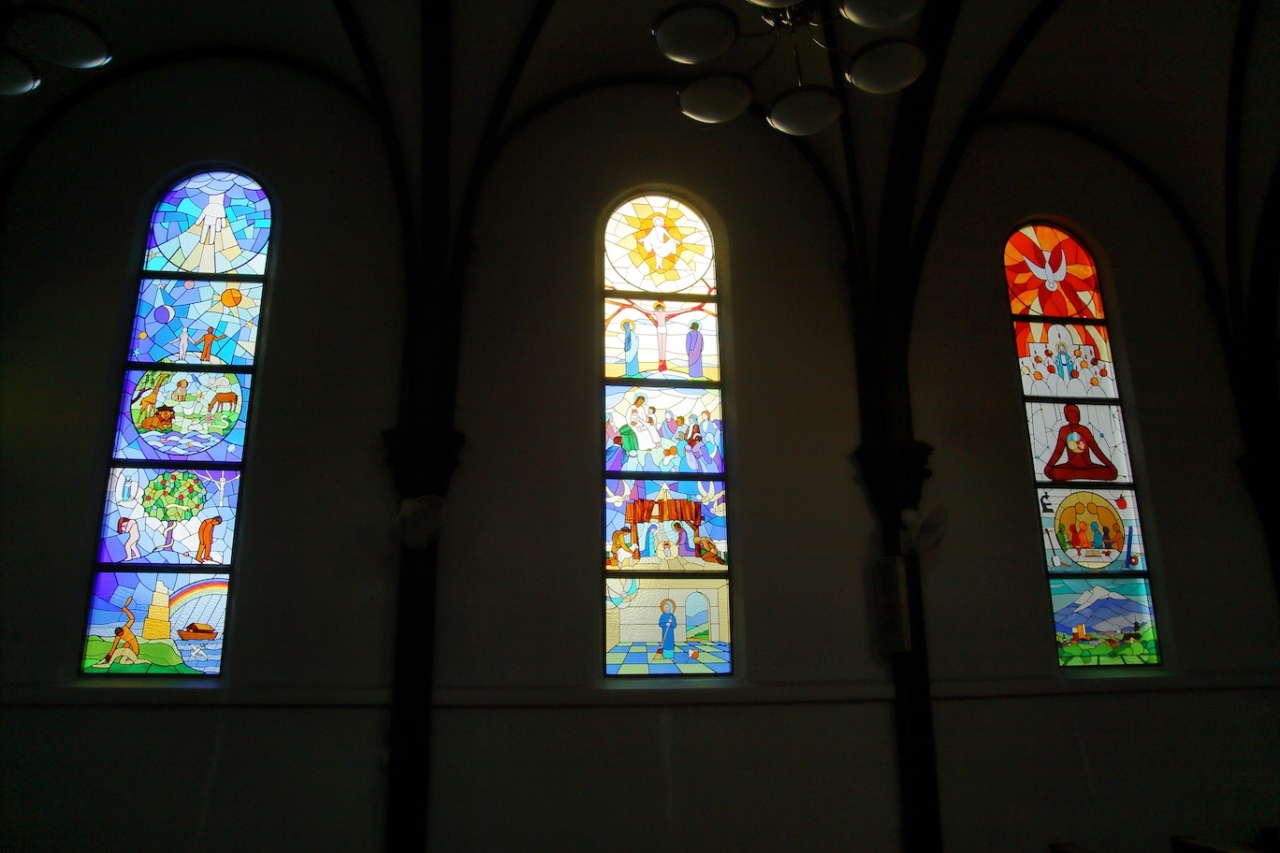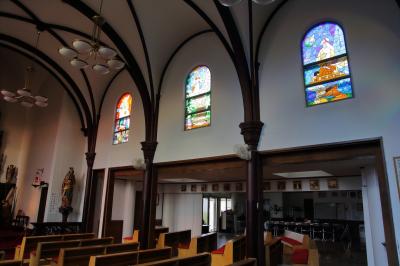 土足厳禁の聖堂内に入ると、やはり装飾は極力排除されていますし、祭壇も質素なものです。ですが、明治に建てられてから100年以上経っていますから、その歴史の重みというか、荘厳な雰囲気は十分に感じられましたし、無駄なものを極力排した美しさを感じました。