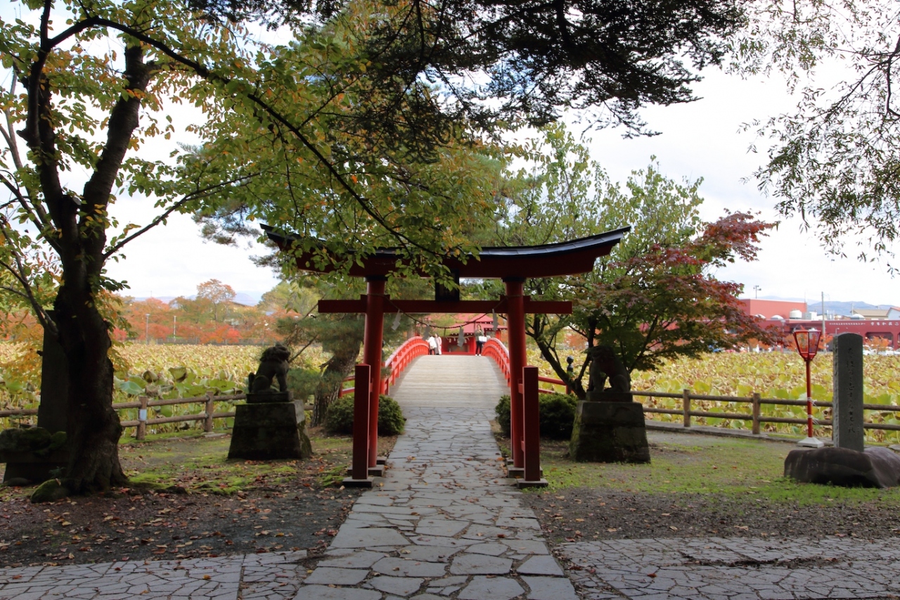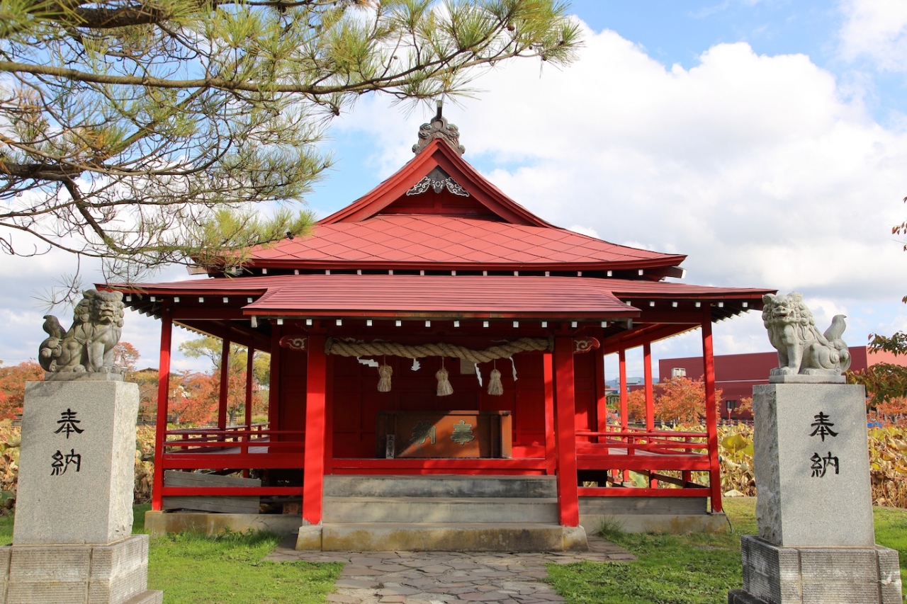 阪上田村麿が蝦夷征伐祈願のために建立したと伝わる由緒ある神社です。最寄駅は弘南鉄道弘南線の津軽尾上駅ですが、若干離れているので車で行くのが便利でしょう。隣接する猿賀公園の見晴ヶ池を囲むように駐車場がありますし、猿賀神社の北側にも駐車場が整備されているので、停める場所に困ることはありません。