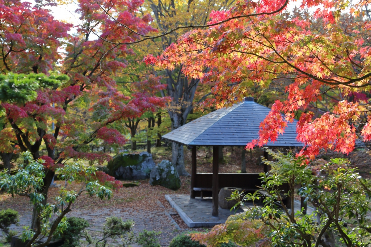 桜と紅葉はもちろん、夏は蓮、冬は雪景色が楽しめる、ということで訪ねました。紅葉には若干早く、園内全体が真っ赤に染まっている、という状態ではありませんでしたが、場所によっては十分に紅葉しており、中々楽しめました。特に、噴水広場の生垣が綺麗に赤く染まっており、展望スペースから岩木山は見えませんでしたが、十分に満足できる景色を楽しめました。機会があれば桜を見に行ってみたいですね。