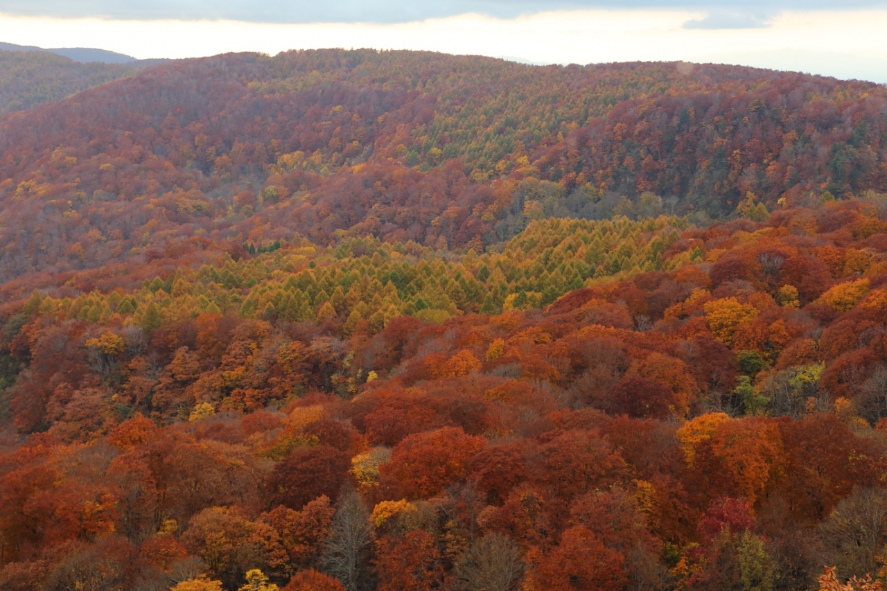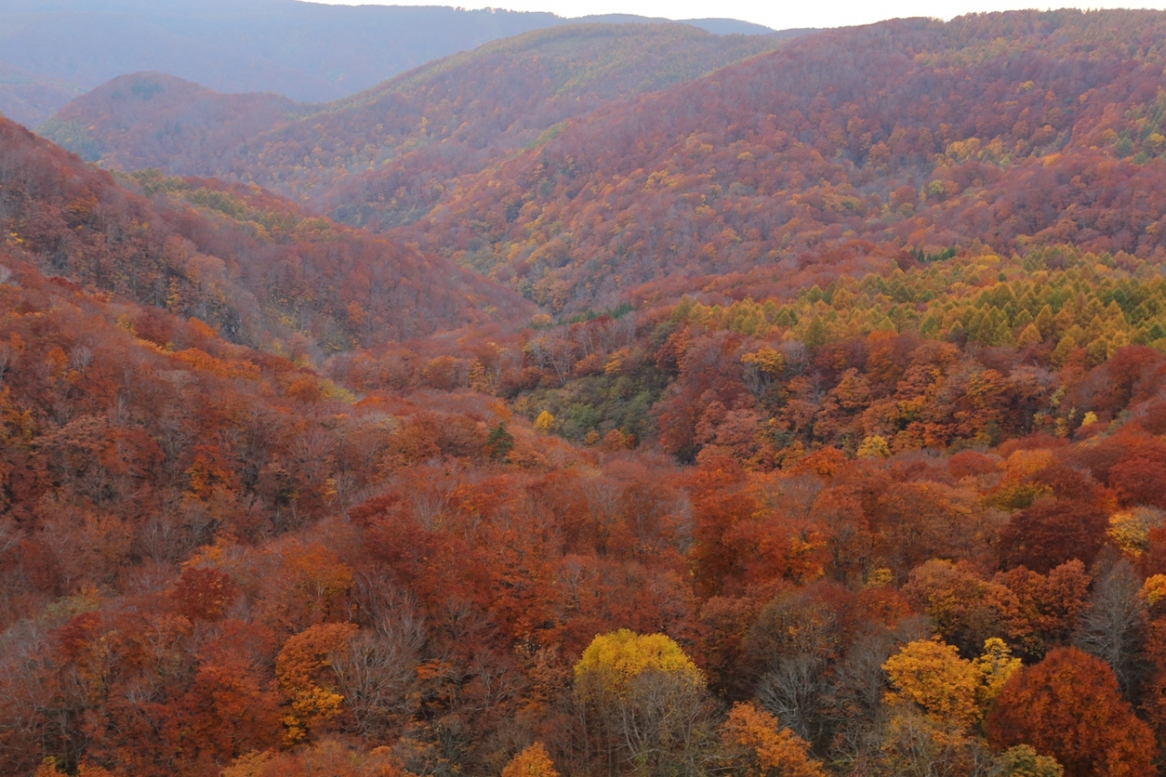 八甲田連山の大パノラマを楽しめる場所ですが、やはり見るべきは紅葉の時期でしょう。紅葉の時期になると城ヶ倉渓谷の木々が一斉に紅葉し、橋の上から一面赤や黄色に染まった大パノラマを見ることが出来ます。私が訪問した際にはかなり日も傾いており、落葉も始まっていましたが、それでも鮮やかな紅葉を見ることができました。最盛期であれば、どれほど素晴らしい景色を見ることができるのか、と思わずにはいられません。本当に一面の紅葉を見ることができるので、紅葉名所として紹介されるのも当然と思います。
