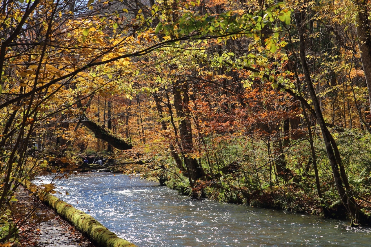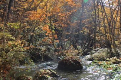 どのような景色が見られたかは写真をご覧ください。若干紅葉には早い場所もありましたが、その点を差し引いても美しい景色が楽しめました。ただ、1つアドバイスをするとすれば、焼山から石ヶ戸にかけては見どころは三乱の流れくらいしかありません。あくまでも紅葉と渓流の組み合わせ、という意味でですが。ですので、紅葉時期に奥入瀬を楽しむのであれば、石ヶ戸まで行き、そこから少し下って三乱の流れを見てから、遊歩道を子ノ口に向かって歩いて行くのが良いでしょう。