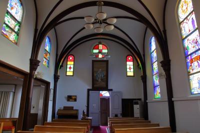 こちらの教会は自由に入れるわけでは無く、普段は施錠されています。牧師さんが在宅であれば見学させて貰えるのですが、不在の場合は見学できません。ご注意ください。