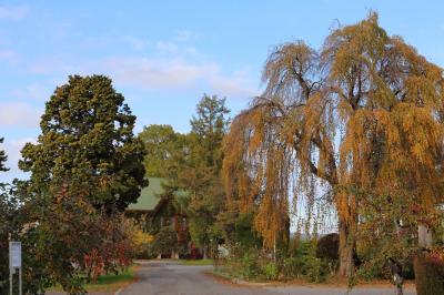 実際に行ってみた結果ですが、まだ紅葉には早く、蔦がちょうど赤くなり始めたところでした。資料館全体が真っ赤に染まった景色を期待していたので、残念でした。