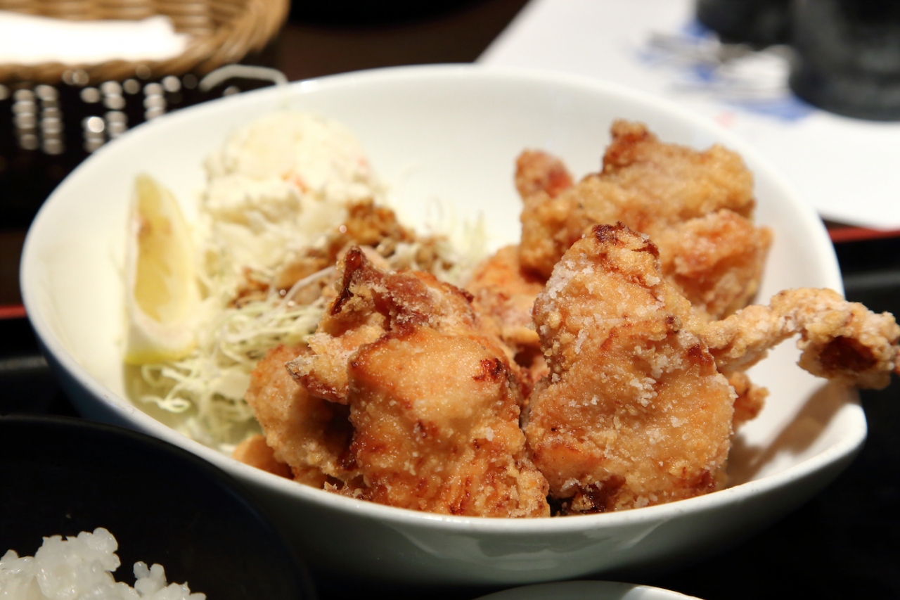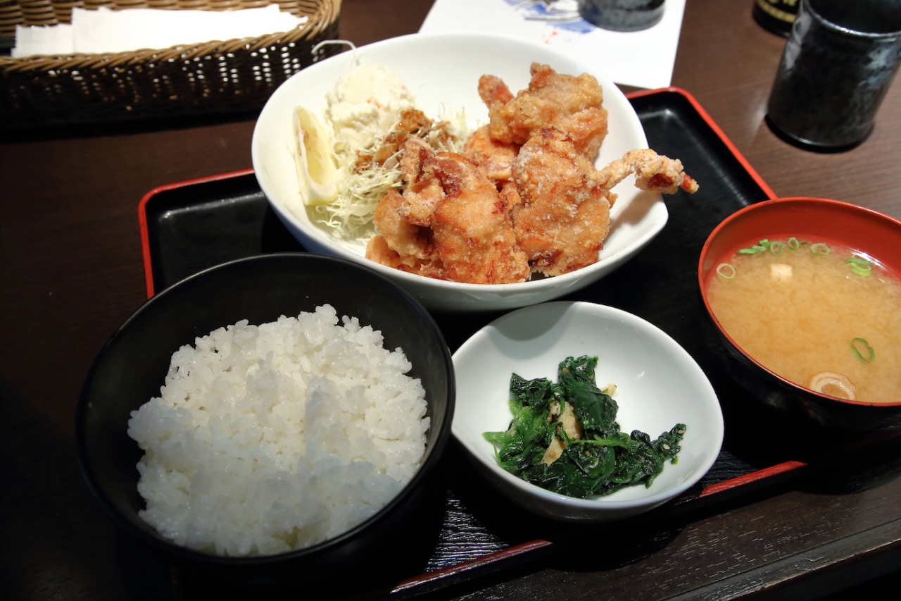 こちらでは超山盛り唐揚げ定食を頼みましたが、名前の通り大き目の唐揚げが8つと小鉢がついて\800と、非常にリーズナブルでした。ご飯もお代り自由ですから大食漢の方でも満足できると思いますし、味も良かったのでお勧めできます。ただ、唐揚げは色々な部位を使っているようで、少々パサついたものもありました。この点は少々残念でした。- 旅行時期