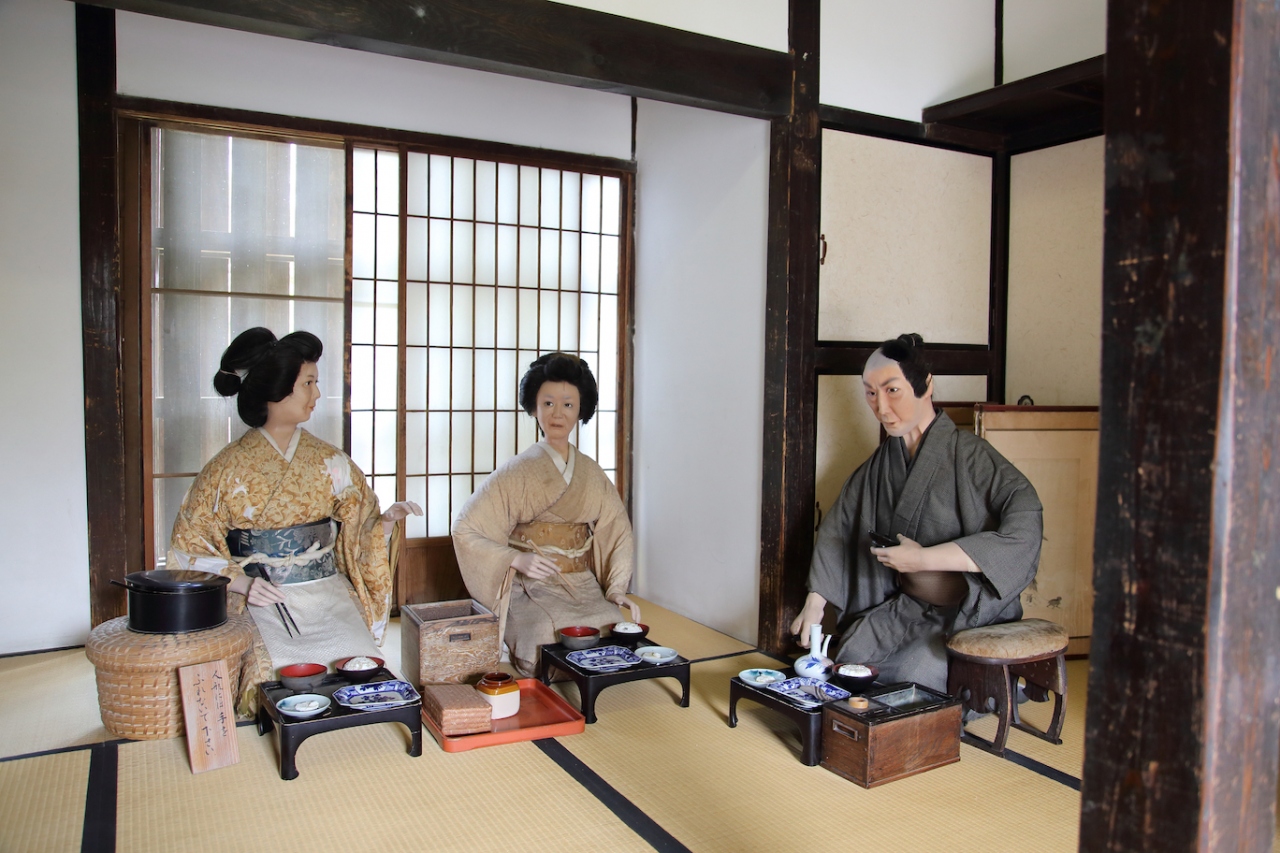 島原の武家屋敷街は元々徒士町なので、下級武士が住んでいた所です。其処にある武家屋敷ですから、当然大きくありません。間取りは各家で異なりますが、建坪は大体25坪で統一されているようです。ですから、座敷が2間か3間、あとは土間と台所、という構造です。また、各家とも等身大の人形が置かれていて、往時の生活の様子を展示しています。この人形が微妙にリアルなので、知らないで行くと驚くかも知れません。