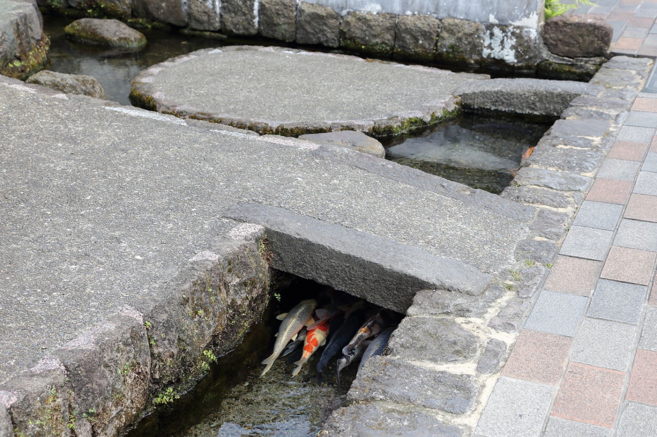 ちょっとは見は普通の住宅街ですが、側溝を見ると美しい水と、そこに泳ぐ鯉が直ぐに目に入ってきます。見ているだけで涼やかで、落ち着いた気持ちになります。水に囲まれた休憩所もあり、そこに座ってのんびりしているだけで癒されます。島原散策の際には是非訪れてみて下さい。- 旅行時期