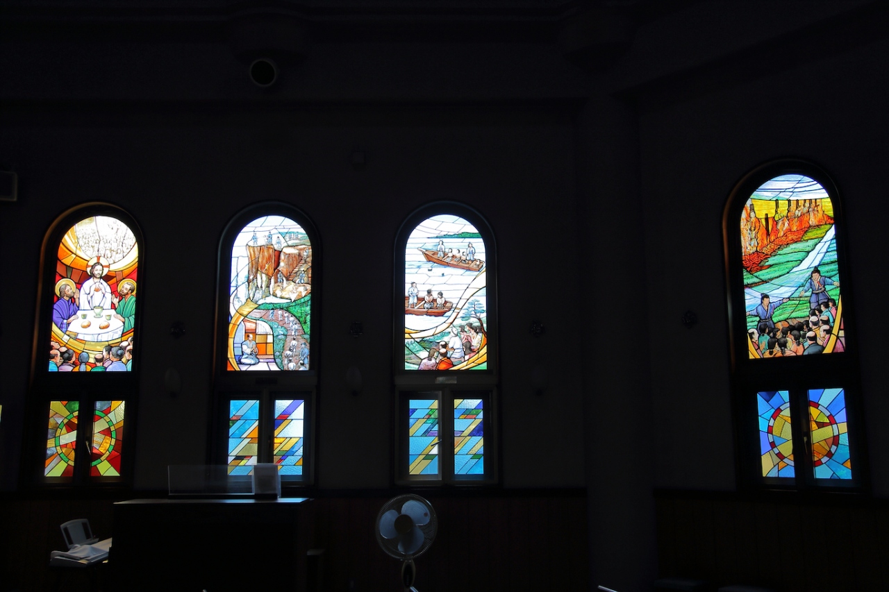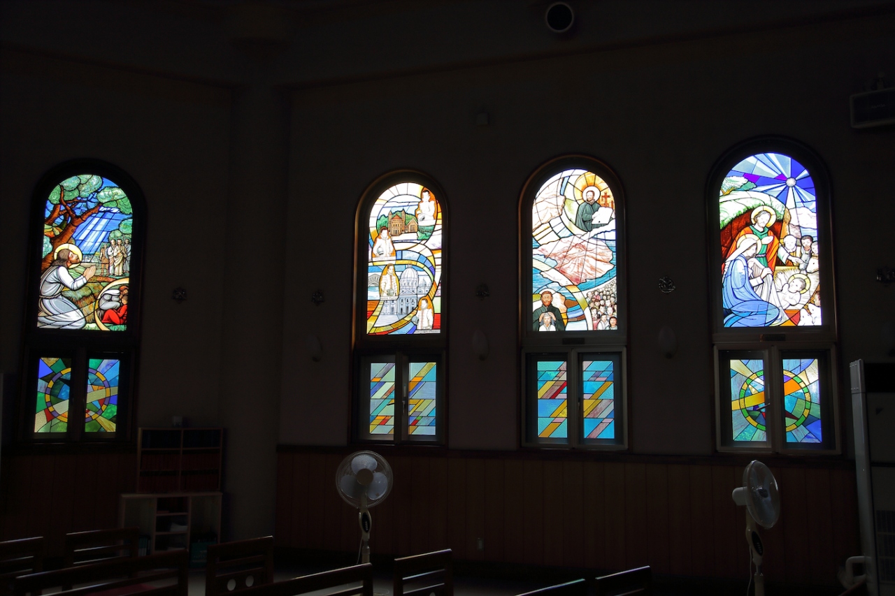聖堂自体は新しく、平成になってから建てられたものです。外見はモダンで、ゴシック建築やバロック建築のような装飾はありません。ファサードには殉教し、後に福者となった殉教者の像が飾られているのみです。内部は現代的で、ヨーロッパの教会のような凝った装飾はありません。ただ、壁には踏み絵や、島原の乱の際に一揆軍が掲げた旗が懸けられ、ステンドグラスには島原のキリシタンの殉教が描かれており、ファサードの像と相まって殉教者の為に祈りを捧げる場所なのだということを強く感じます。ヨーロッパの教会のように観光気分で立ち寄ってみましたが、そういう場所ではないことを強く感じました。- 旅行時期