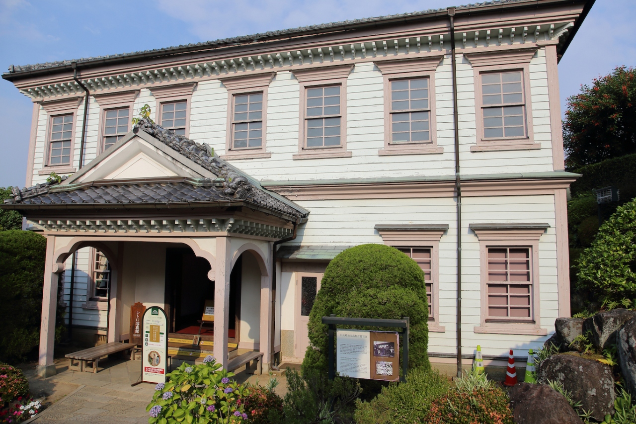 グラバー園内にある洋風建築です。グラバー園の第2ゲートの直ぐそばにあります。三菱造船が1896年に建てたもので、船員の宿泊・休憩の為に利用されていた建物です。2階建ての建物で、内部には『明治日本の産業革命遺産』の説明がある他、机やテーブル、椅子などが展示されています。