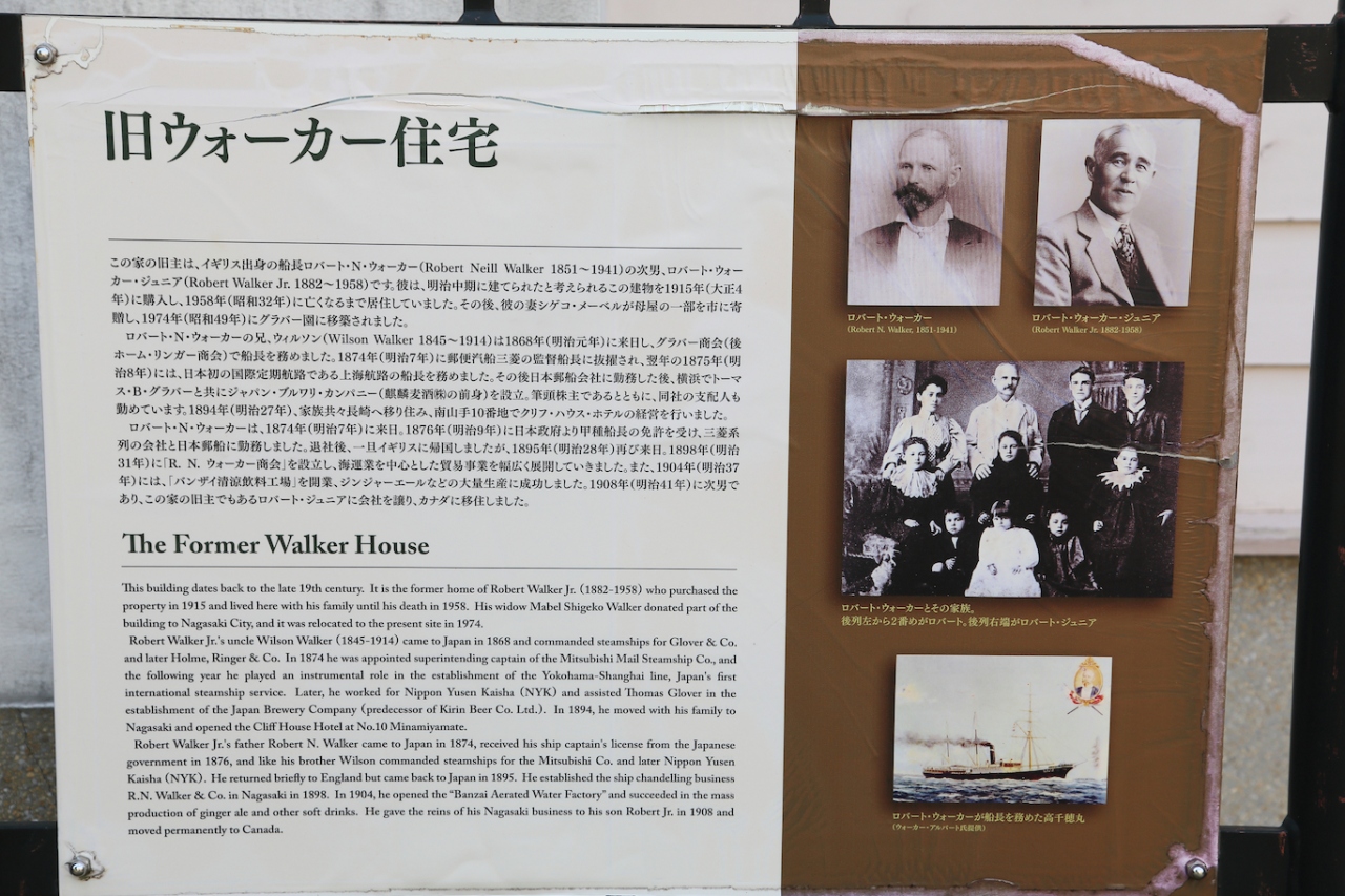 グラバー園に移築されている洋風建築の1つです。海運業と清涼飲料水の製造業を営んでいたロバート・ウォーカー氏の住宅で、元々は大浦天主堂の隣に建っていたそうです。