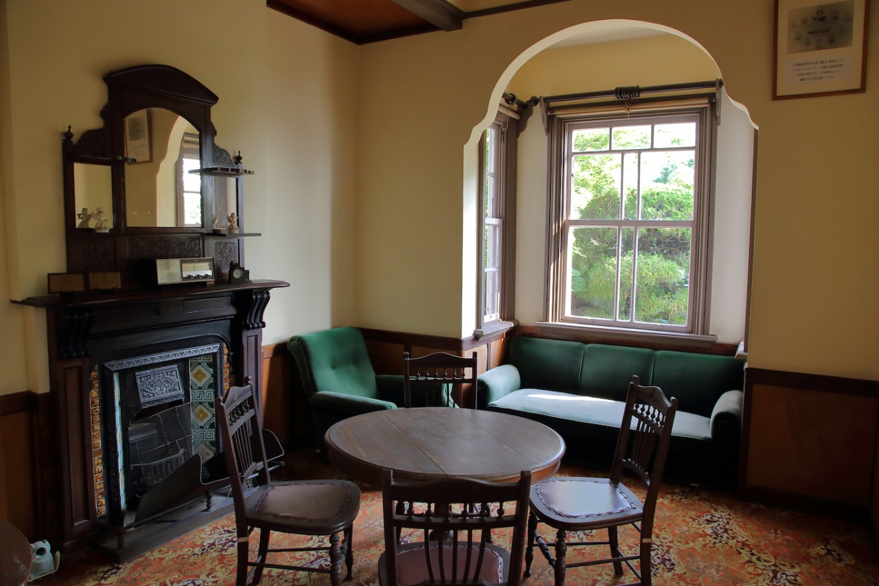 グラバー園にある他の邸宅と比べるとかなり小さく、内部も4部屋しかありません。ですが、どの部屋も気持ち良く過ごせそうですし、小ぶりなベランダも心地良さそうです。外見も和洋折衷で、出窓に庇がついていたりして、異国情緒を感じさせます。自分が住むならこんな家が良いな、と感じさせる建物です。- 旅行時期