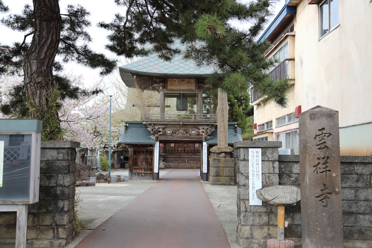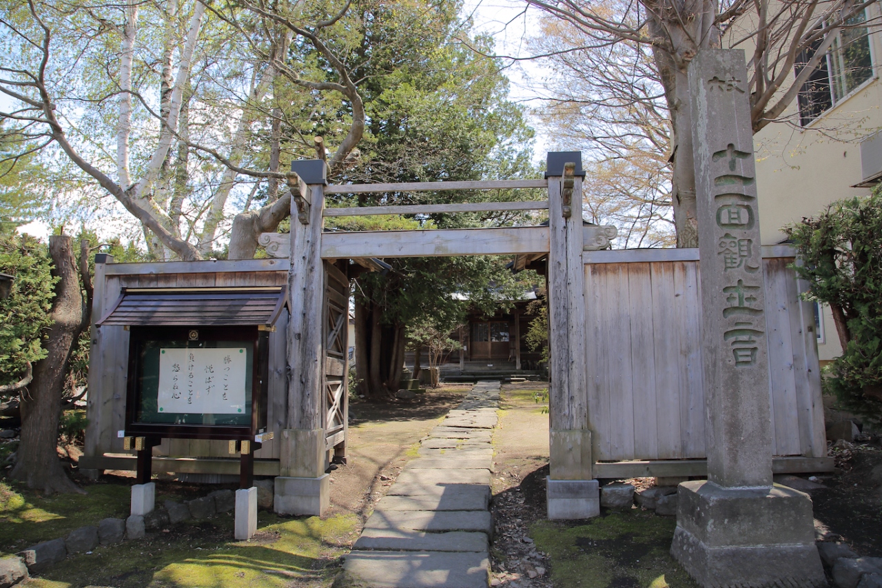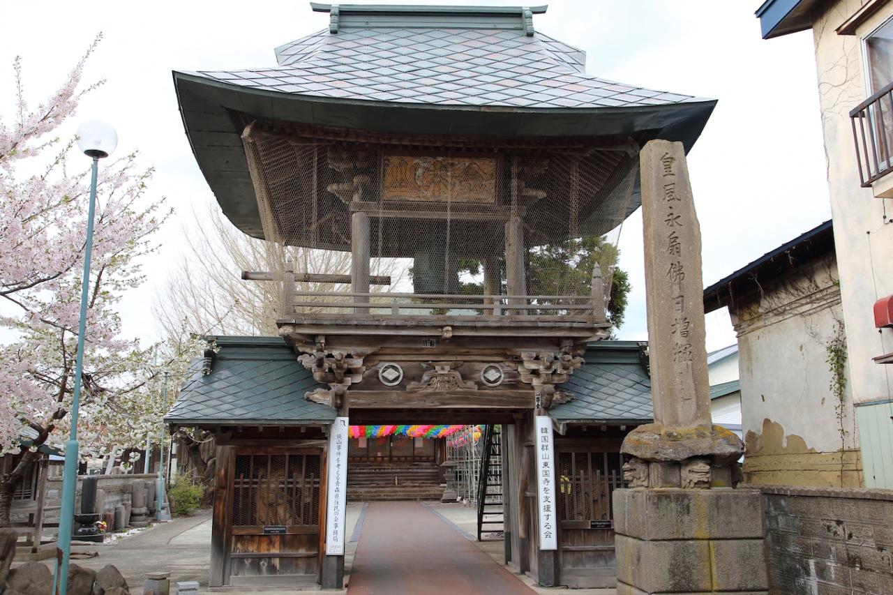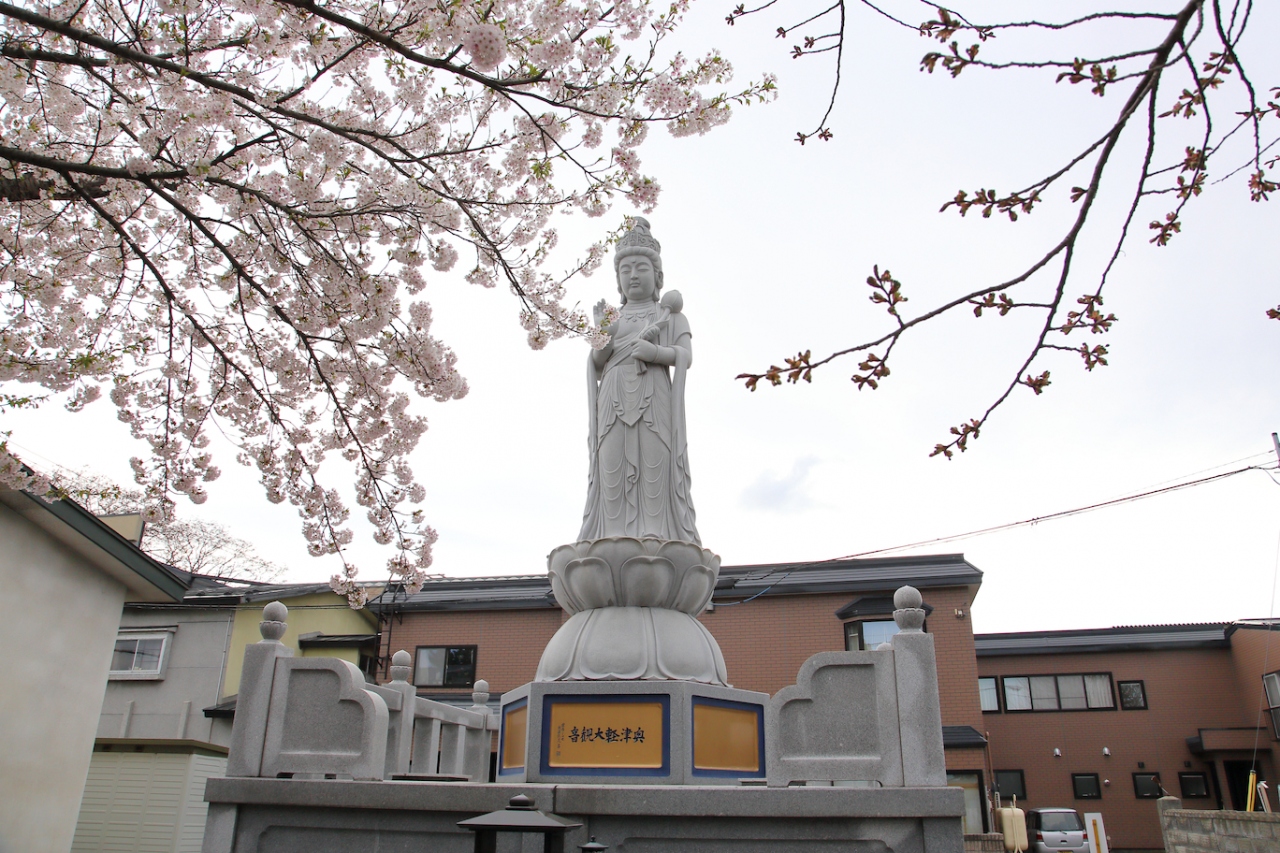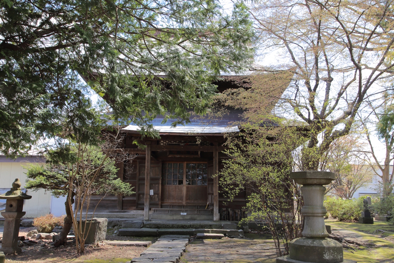 旧金木町に建つ寺院です。太宰治の生家からも近く、太宰治が幼い頃に良く遊びに行った寺としても知られています。金木駅を降りて、駅前の通りを真っ直ぐ西に向かうとあります。最初のY字路を右方向に進んで行くと、津軽三味線会館の手前の右手側にあります。
