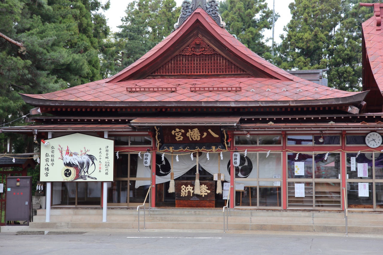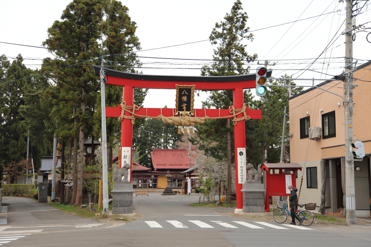 弘前の市街地に建つ神社です。ちょうど弘前八幡宮の南に建っています。行き難い場所にあるので、八幡宮と同様、車かバスを使っていくことをお勧めします。但し、バスは便が少ないです。バスターミナルから75系統のバスに乗り、田町4丁目バス停で降りれば神社は目の前ですが、1日3便くらいしかなく、土日祝は運休です。注意してください。