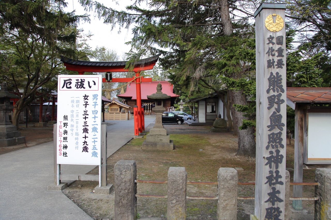 創建は崇神天皇67年(紀元前31年)と伝えられているので、神話の時代まで遡ります。阿部比羅天が熊野権現を勧請したことで熊野神社と命名されたようで、その後は津軽藩主から崇敬を受け現在に至っています。この為、社殿は津軽氏が建立しており、本殿は江戸時代初期に建てられたものが残っています。また、本殿は重要文化財に指定されています。あまり建築には詳しくないので、多少立派な本殿だな、というくらいにしか感じませんでしたが。八幡宮との直接の関係は無いようですが、距離的には歩いて5分も離れていないので、セットで参拝すると良いでしょう。- 旅行時期