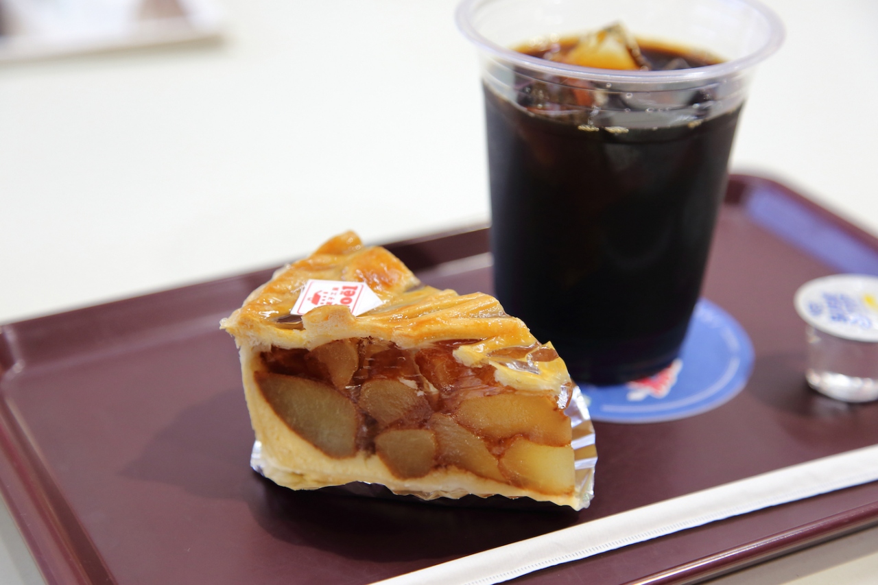 こちらの看板商品はボリュームのあるアップルパイです。普通のアップルパイはリンゴの薄切りやペースト状のものを詰めていますが、こちらは乱切りにしたリンゴをゼリーで固めて入れています。その為、高さも高く、見た目的にもボリュームがあります。味も上品で、とても美味しかったです。ただ、お店で付けて頂いたスプーンでは食べ難いので、手づかみで食べました。弘前でアップルパイの食べるなら、是非こちらも候補に入れてみてください。- 旅行時期