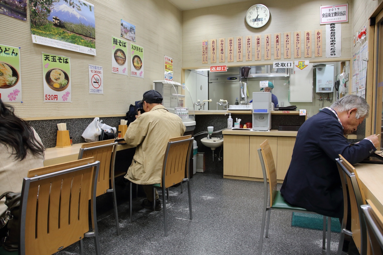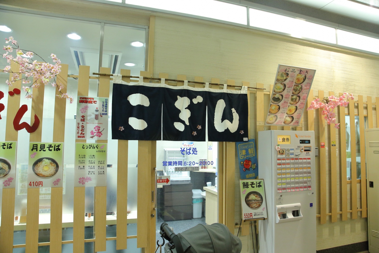 JR弘前駅の1階に入っているそば屋です。店内にはカウンターと椅子が並んでいるので、立ち食いではありません。電車待ちの間に小腹を満たすために入りました。