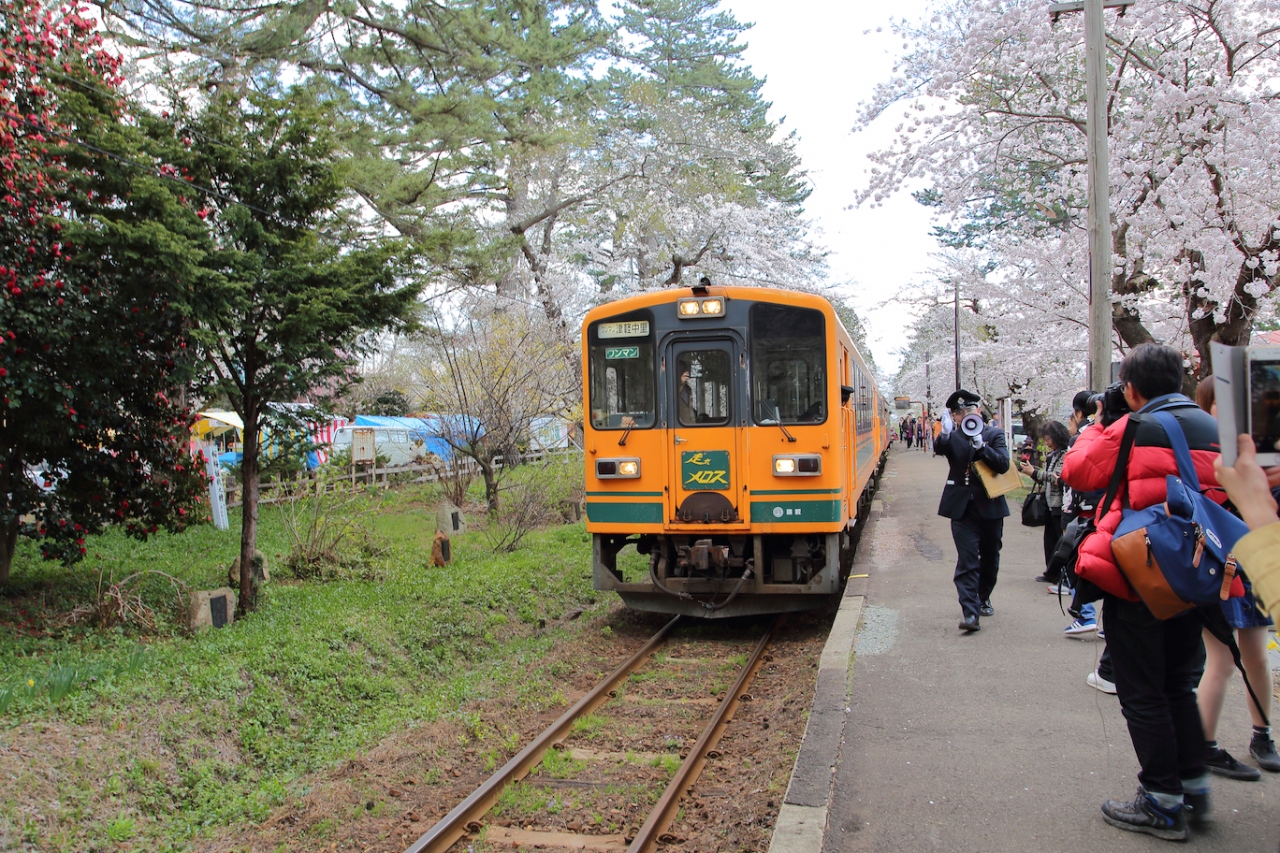 津軽五所川原から津軽中里までを結ぶローカル鉄道です。沿線には太宰治ゆかりの場所や、桜の名所である芦野公園などがあります。また、桜のトンネルを電車が潜って行く映像を見たことがある方も多いと思いますが、そちらは津軽鉄道の芦野公園駅での光景です。こういった観光資源が評価されている為か、以前に乗ったときと比べて乗客が格段に増えていました。今回私が乗った車両は3両編成になっていましたが、乗員の方も珍しいと仰っていました。