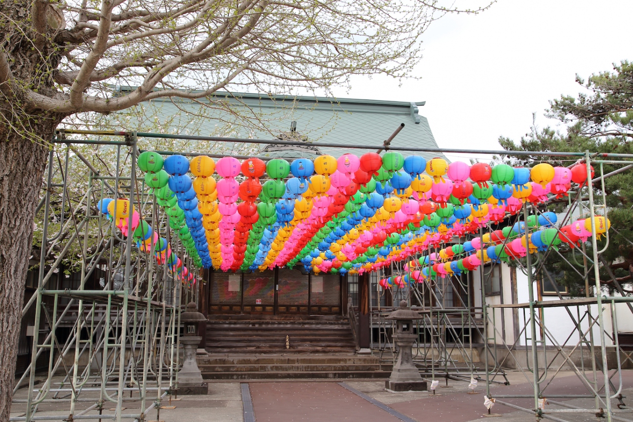 お寺ではありますが、本堂は全くお寺のように見えません。外見は書院造りの地味な建物で、内部も本尊は祀ってあるものの襖や柱で仕切りが出来るようになっています。普通、本堂内は1つの大きな空間にすることが一般的なので、大分異なっています。それもその筈、こちらは外敵が攻めて来た時や、弘前城が落城した際に第二の城郭として使えるように設計されているとのことで、軍事拠点として整備されているそうです。また、藩主家の菩提寺ということで、藩政時代は一般領民の出入りは禁止されていたそうです。奥にある霊廟も、家康公の養女が津軽家に嫁いでいる所為もあってか、非常に立派なものです。是非ご覧になってください。- 旅行時期
