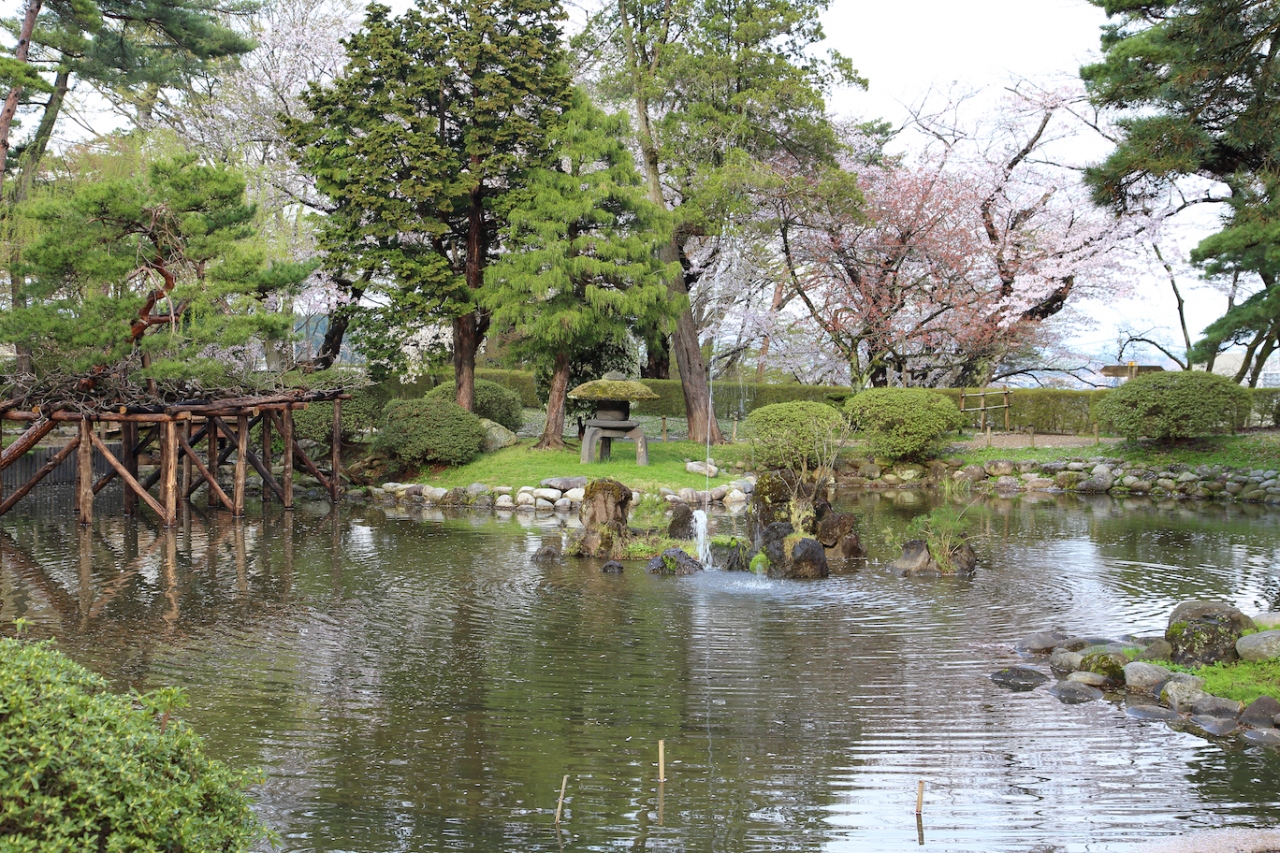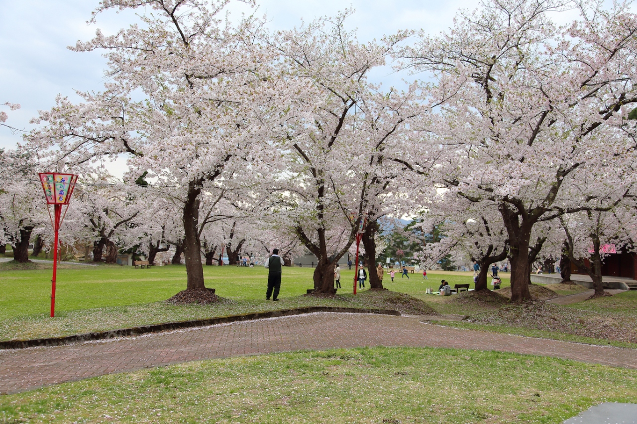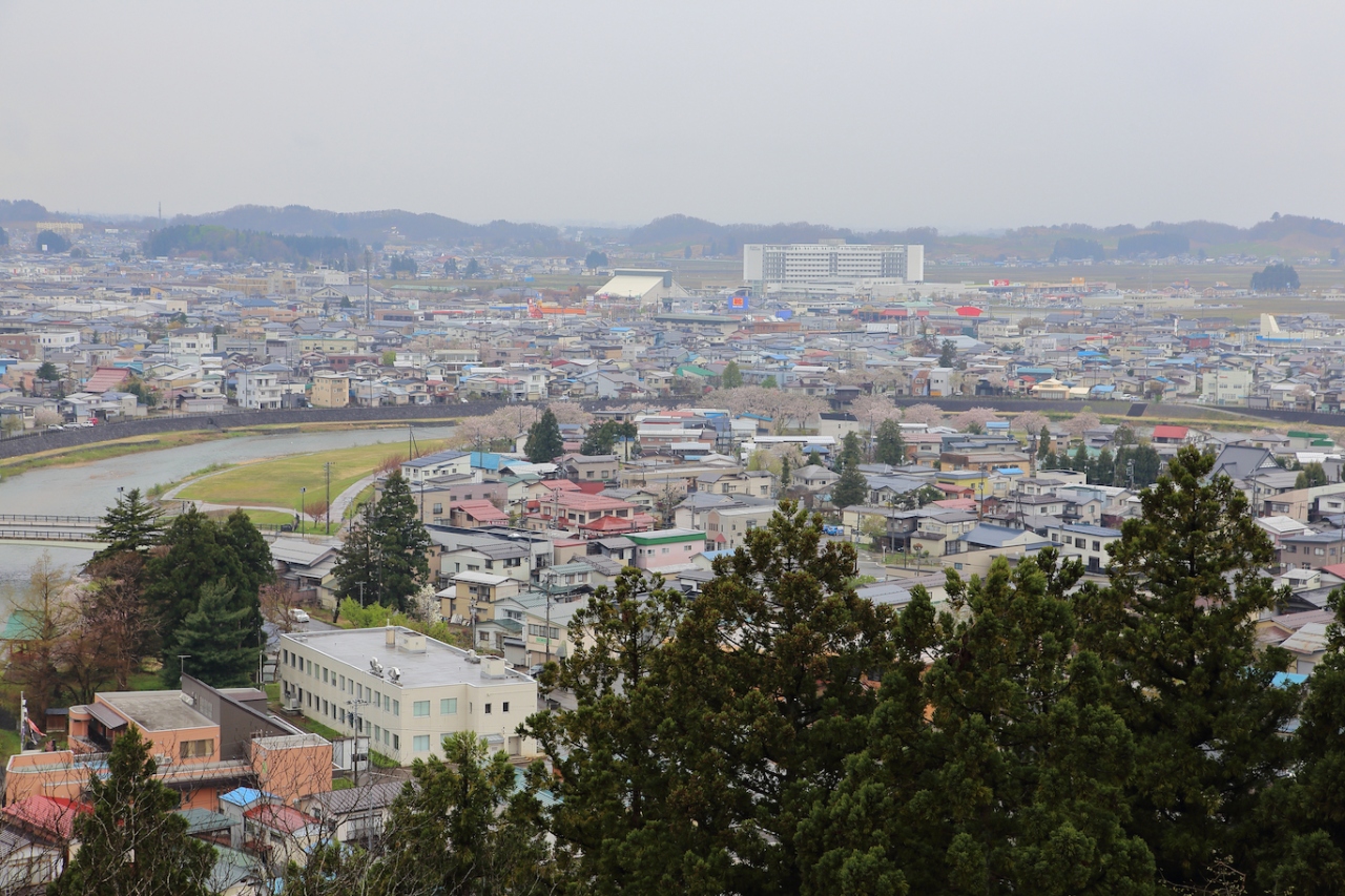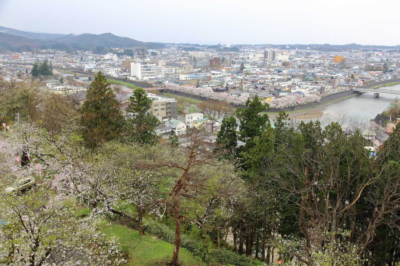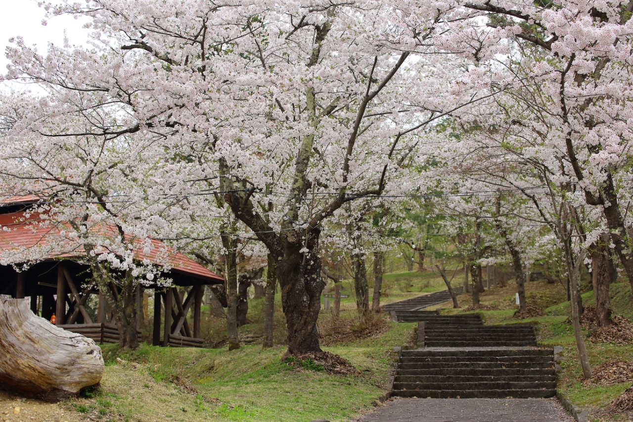 横手の市街地の北東にある横手城跡を整備した公園です。公園内の二の丸跡には天守を模した展望台兼資料館が建てられ、本丸跡には秋田神社が建てられています。公園の敷地はかなり広大で、二の丸、本丸以外にも野球場やスキー場、ダム湖まであります。桜も多く植えられており、桜の時期にはさくらまつりが開催されています。