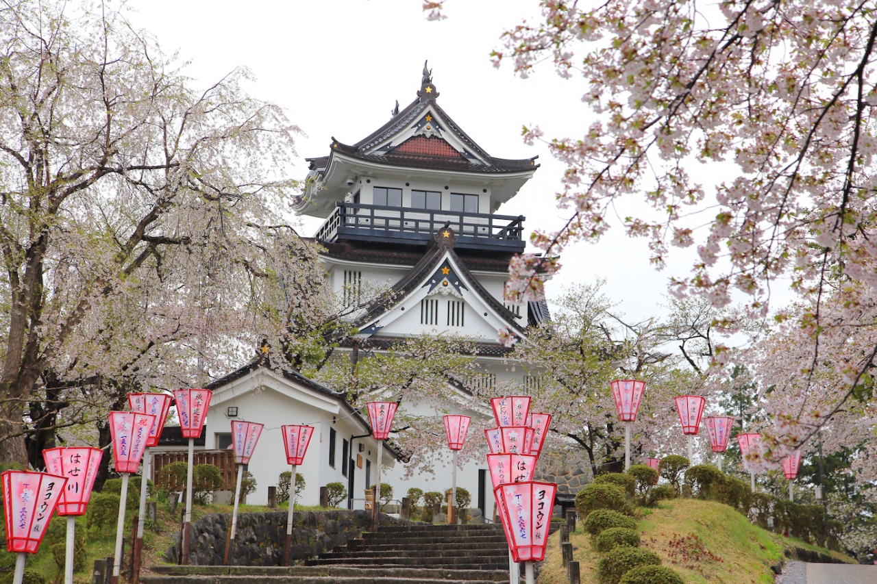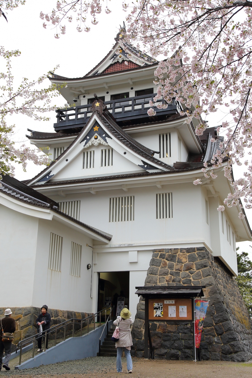 横手公園の二の丸跡に建てられた模造天守です。最上階が展望台となっている他、内部は資料館として利用されています。入館料は100円で、石坂洋次郎記念館、かまくら館、後三年の役資料館との共通チケットになっています。桜の時期は武者溜りから二の丸に続く階段が桜で彩られるので、桜と相まって美しいシルエットを楽しめます。