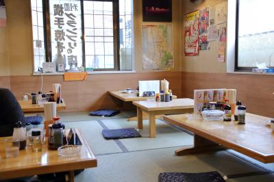 中は座敷になっていて、テーブル席が並べられています。カウンターは掘りごたつ式になっています。メニューは豊富で、スタンダードな横手焼きそばから、黒毛和牛焼きそば、牛すじ焼きそば、ピリ辛焼きそばなどもあります。横手焼きそばをあまり食べたことが無いので、やはり最初はスタンダードだろう、ということで普通の横手焼きそばの大盛りを頼みました。