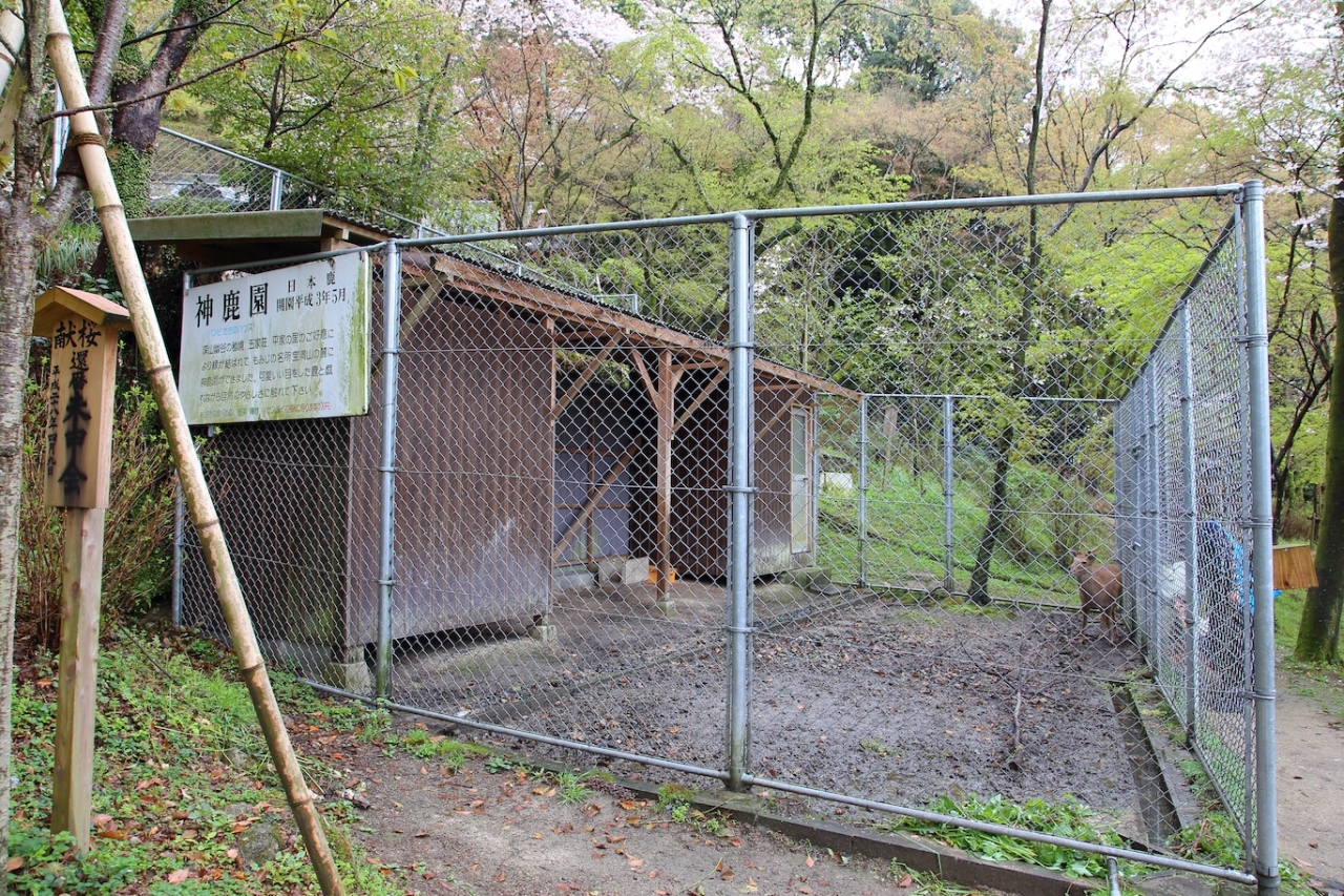 こちらは縁結びの神様として信仰されている他、桜の名所として有名です。写真を見て貰えば判るとおり、結構見応えがあります。ただ、桜が咲いているのは一の鳥居から二の鳥居の間の参道と、脇の広場だけです。社殿の周りには咲いていません。あと、こちらでは神鹿として生きている鹿が飼われていました。奈良は別として、生きている鹿を飼っているのは珍しいかと。