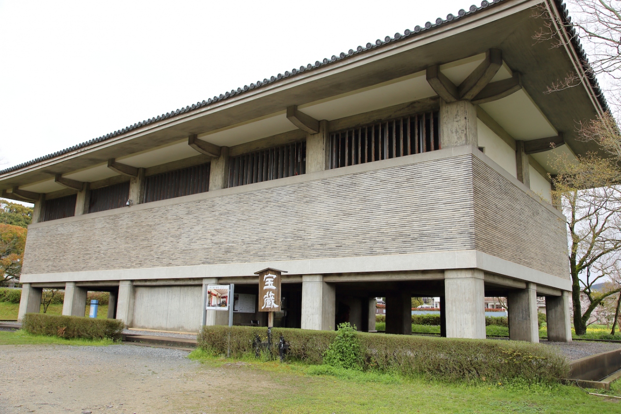 観世音寺の境内にある宝物庫です。高床式で、2階が展示スペースになっています。鐘楼に吊るされている国宝の梵鐘を除き、観世音寺が所有している重要文化財に指定された仏像が全て納められ、公開されています。なお、当然ながら、内部の写真撮影は禁止されています。