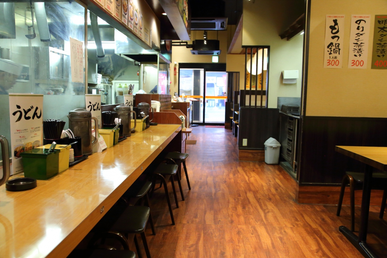 九州はうどん文化ということで、一度九州のうどんチェーンに入ってみたいと思っていました。結構驚いたのですが、こちらの店舗は24時間営業なのですね。関東にもうどんチェーンやそばチェーンは沢山ありますが、24時間営業は珍しいです。私は朝訪れたので閑散としていましたが、夜は結構混むのかも知れませんね。