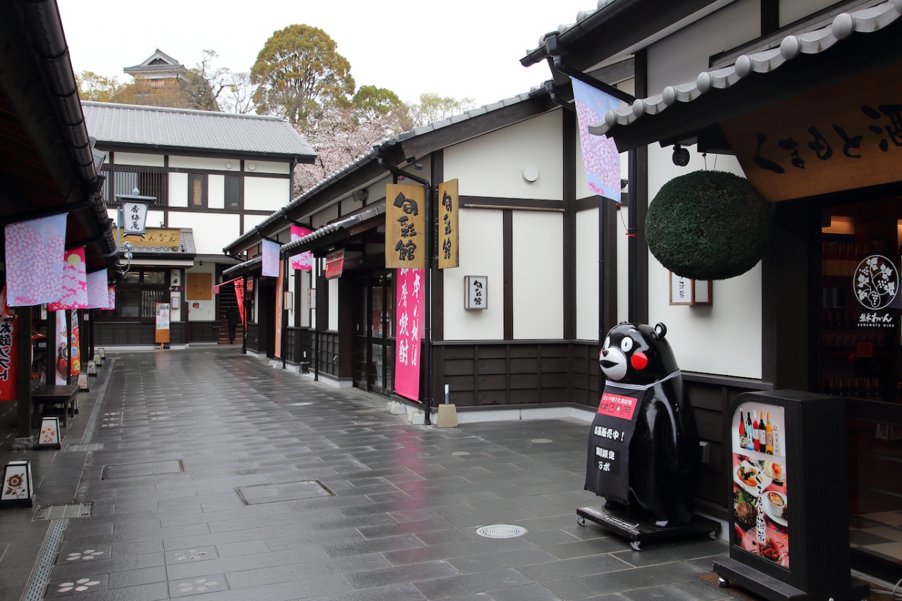 熊本城の麓にある商業施設です。清正公銅像の裏手の坪井川を渡ると左手側にある施設です。大型バスが停まっているので直ぐに判る筈です。