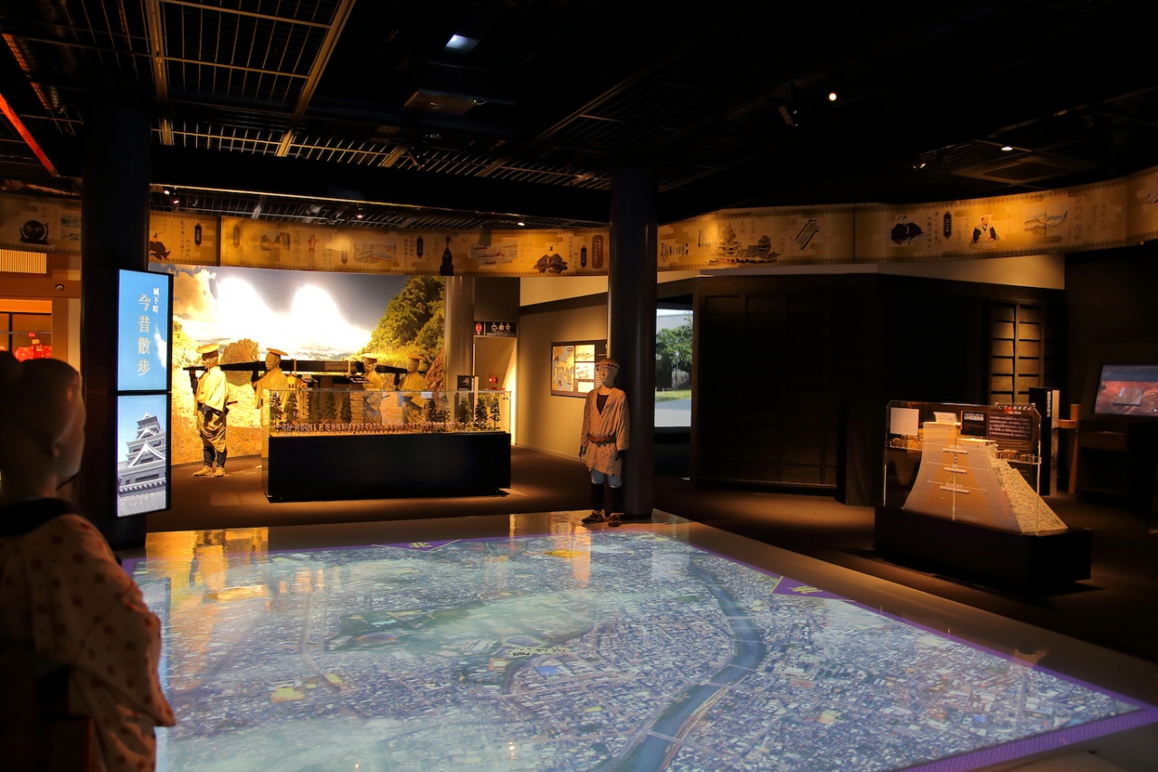 中には観光案内所と体験型資料館である湧々座、土産物屋が軒を連ねています。イベントスペースもあり、色々と開催されているようです。また、通り抜け可能となっていて、熊本城頬当御門の方に出られます。湧々座では熊本城のバーチャルツアーを体験できる他、熊本城の歴史や細川家による熊本の文化について知ることが出来ます。桜の小路と名付けられた場所では土産物を買ったり、軽食を食べることが出来ます。