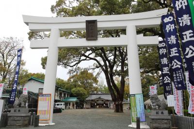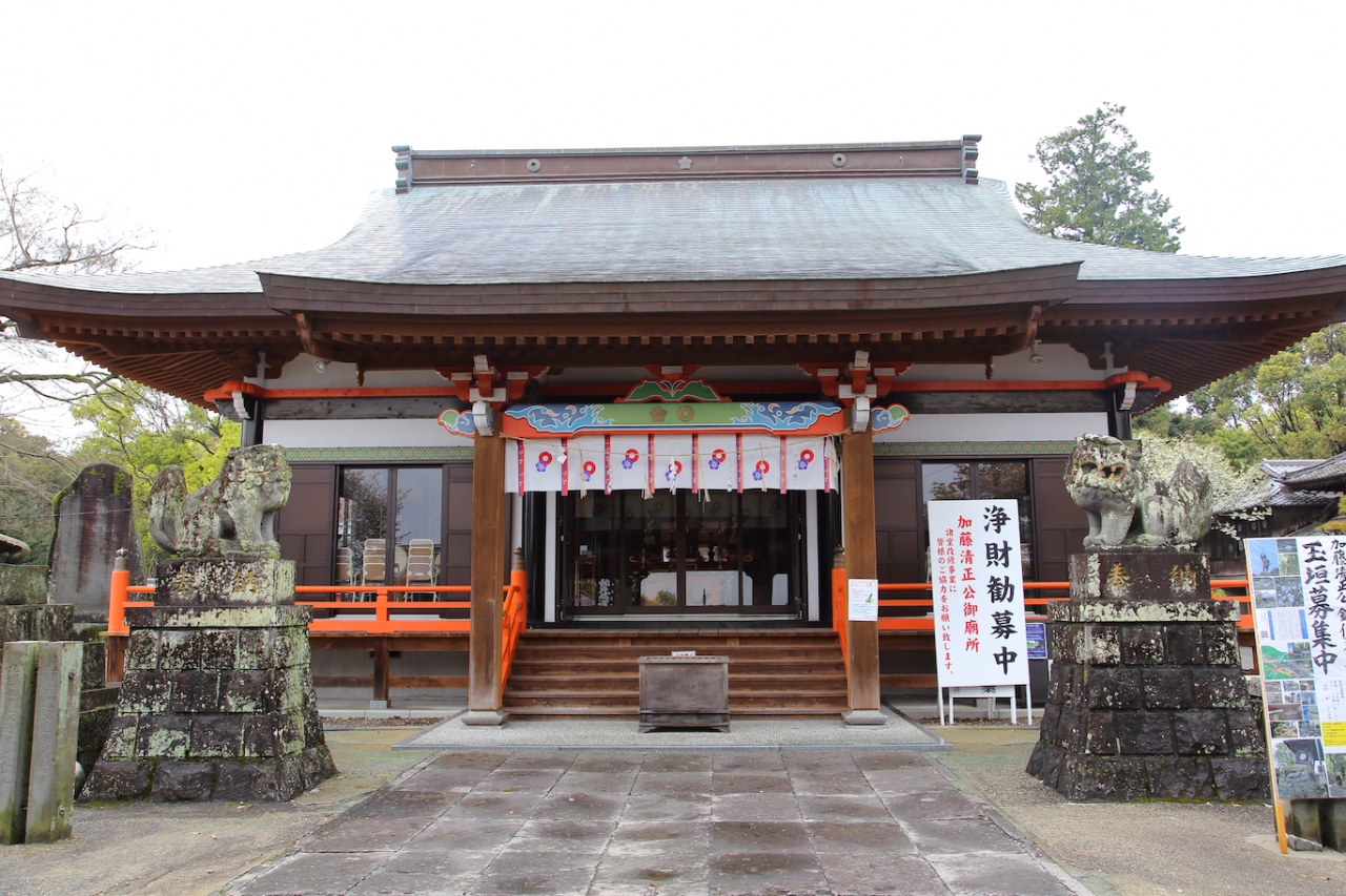各地によくある、明治期に作った旧藩主家の家祖を祀った神社のように見えますが、こちらの由緒はもっと古いです。元々は清正公が亡くなった後に神として祀った浄池廟で、明治の神仏分離令によってこちらに遷座した、という歴史を持っています。ただ残念ながら、社殿はコンクリート造りで有り難味はあまりありません。