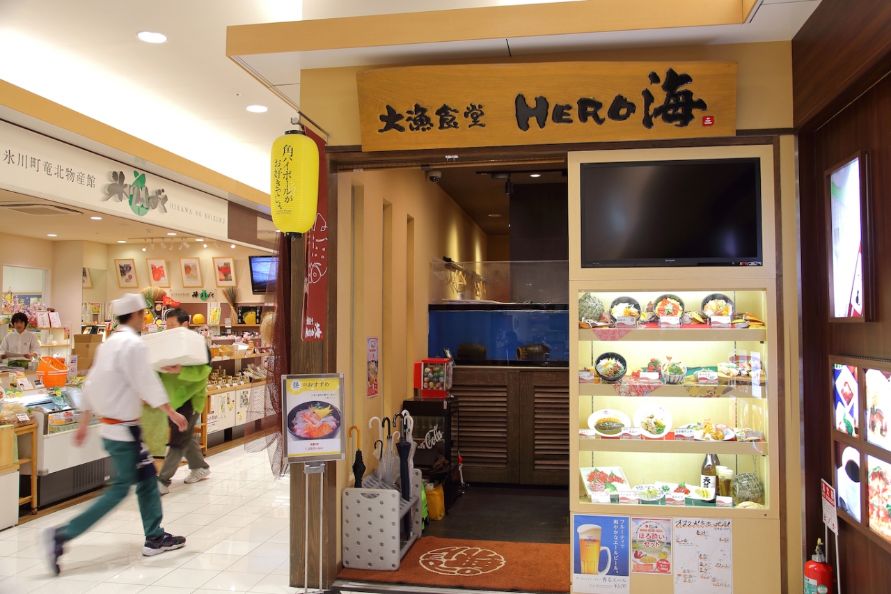 熊本駅えきマチ一丁目の新幹線改札側に入っている食事処兼居酒屋です。市内に何店舗か展開しているようで、その内の1つです。海鮮をメインに扱っているので、新幹線待ちの間に魚で食事を取りたい、という時には便利なお店です。休止時間が無く、開店から閉店まで通しで営業しているので、その点でも重宝します。