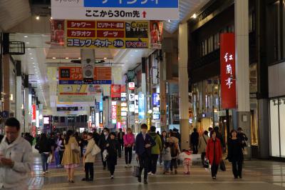 下通商店街と比べると、こちらの方が明るく歩きやすい印象です。店舗の構成はあまり下通と変わらず、全国チェーンが目に付きますが、地場の店舗が若干多いかな、という印象です。居酒屋や食事処が路地を入ったところにあるのは同じです。下通商店街と合わせてブラブラしてみると良いでしょう。- 旅行時期
