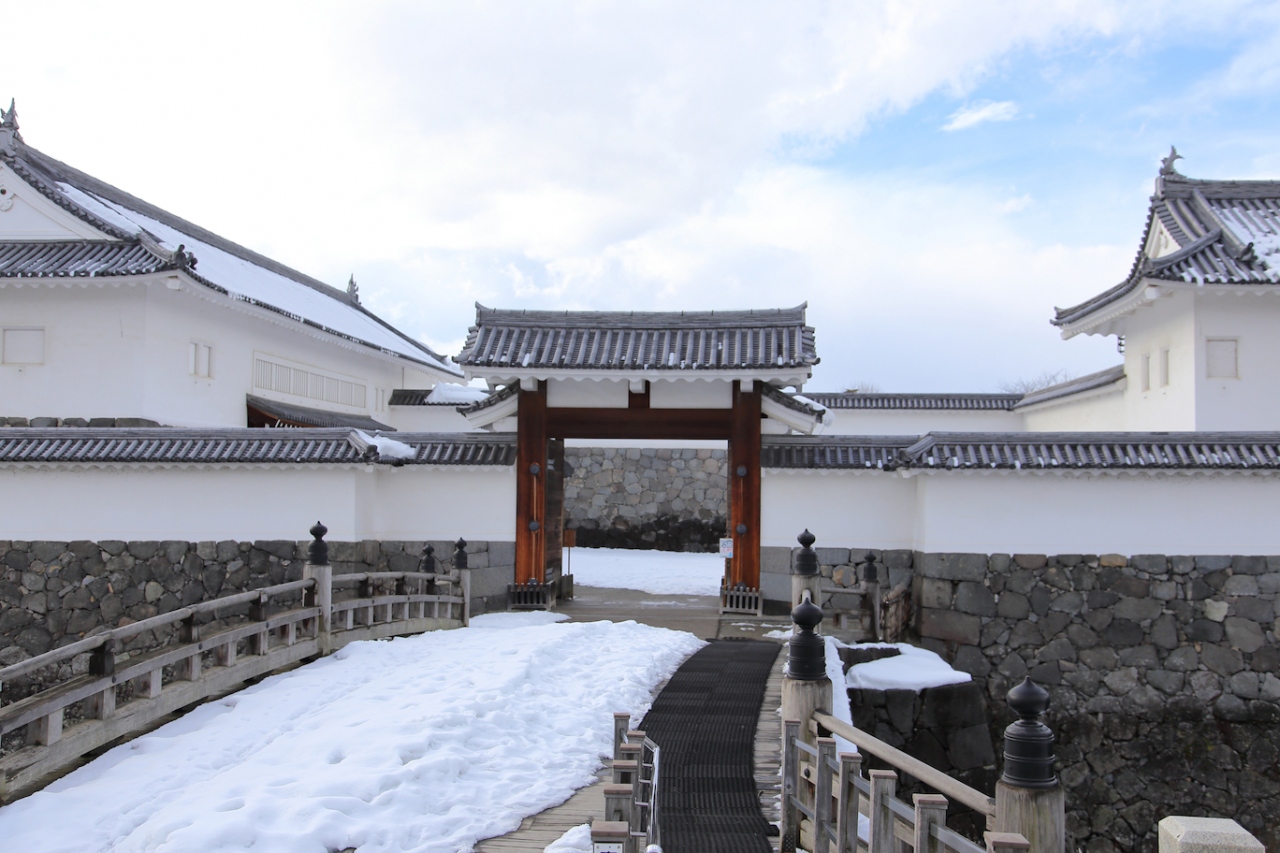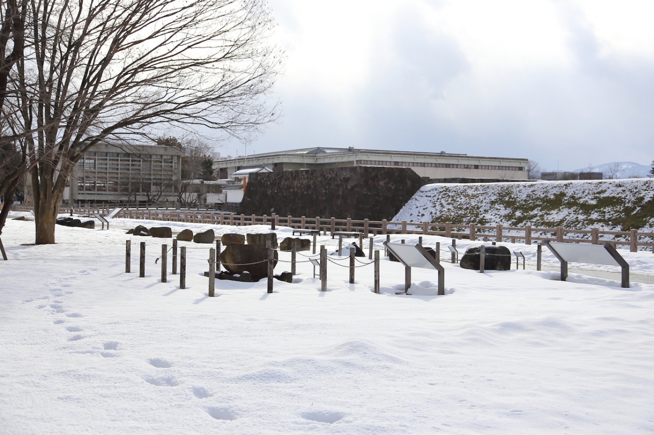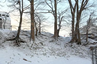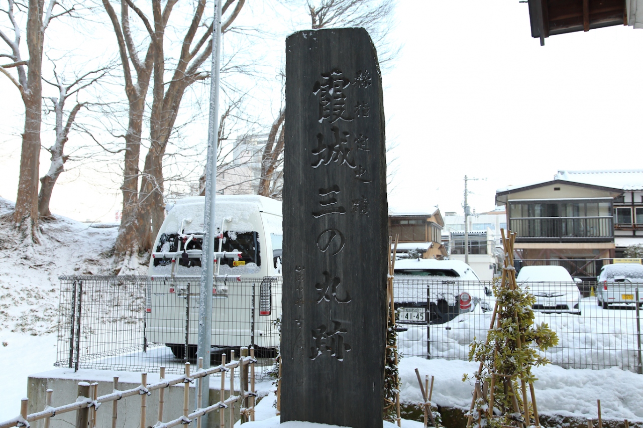 山形城の二の丸を整備した公園です。春は桜で有名です。敷地も広く、中には本丸跡の他に博物館、郷土資料館、野球場、体育館、武道館が入っています。これだけの建物が収容できるのですから、二の丸自体がかなり広かったことを窺わせます。実際、三の丸は歌懸稲荷の辺りに遺構が残っていますから、これから考えると山形城は相当広大だったのでしょう。東大手門には木造で櫓が復元されており、春から秋までは内部を見学することも出来ます。本丸も現在発掘中だそうですが、やはり春から秋までは見学可能です。私は冬に訪れたので、残念ながら見学はできませんでした。