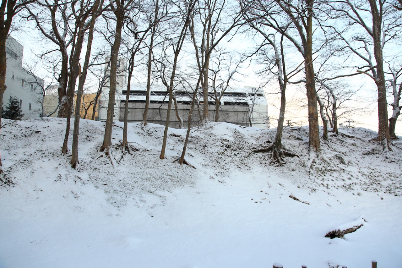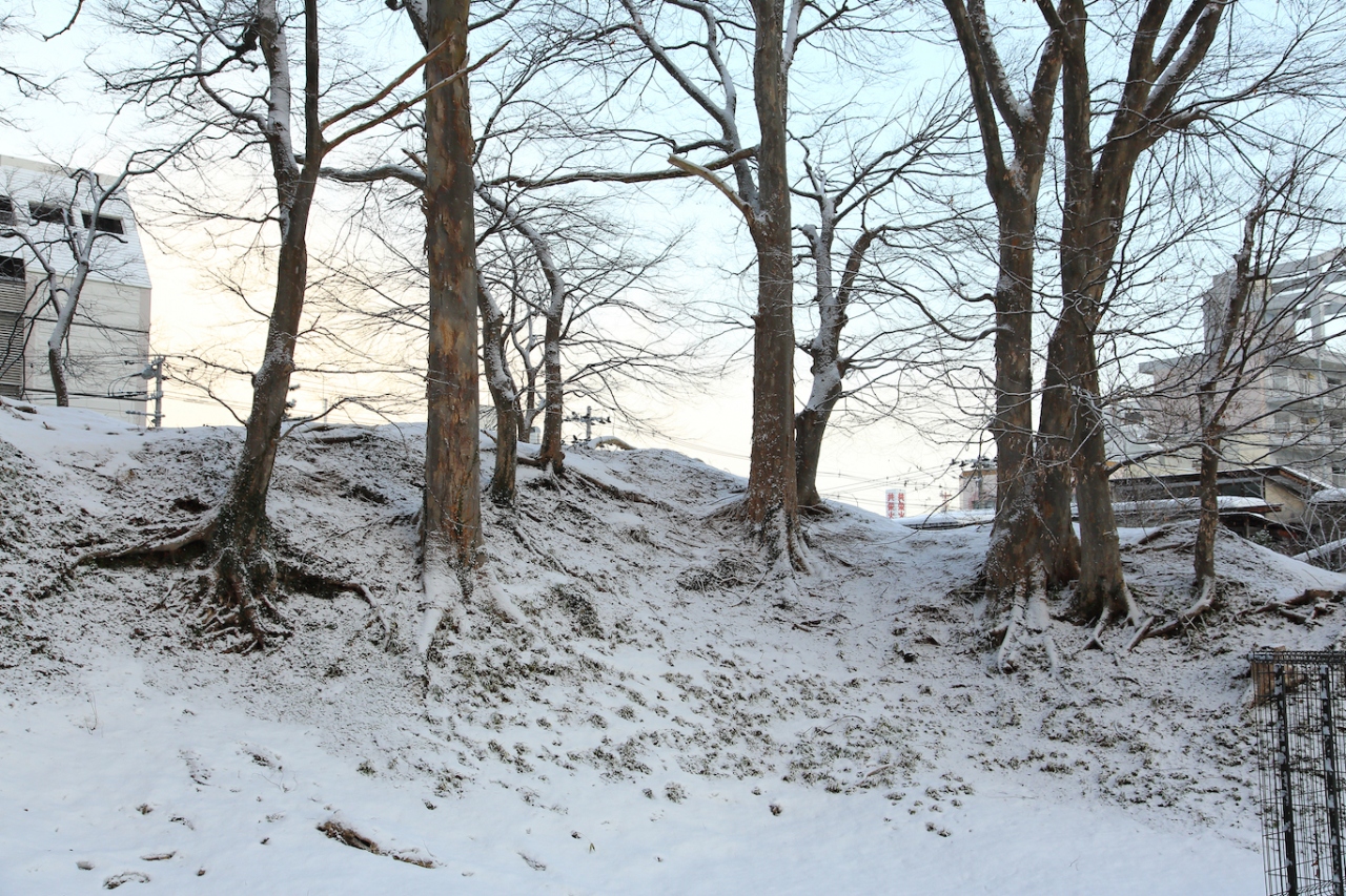 残っているのは土塁と空堀で、堀の深さは3~4m、土塁の高さは5~6m程度に見えます。最上氏全盛時代には、この土塁が今の山形市の中心部分を覆っていたようですから、物凄い規模です。それだけのものを作れた最上氏の権威も相当なものだったのでしょう。最上氏改易後は徐々に破棄されていき、幕末には三の丸はほぼ有名無実になっていたようです。時代の流れの無常を感じさせますね。