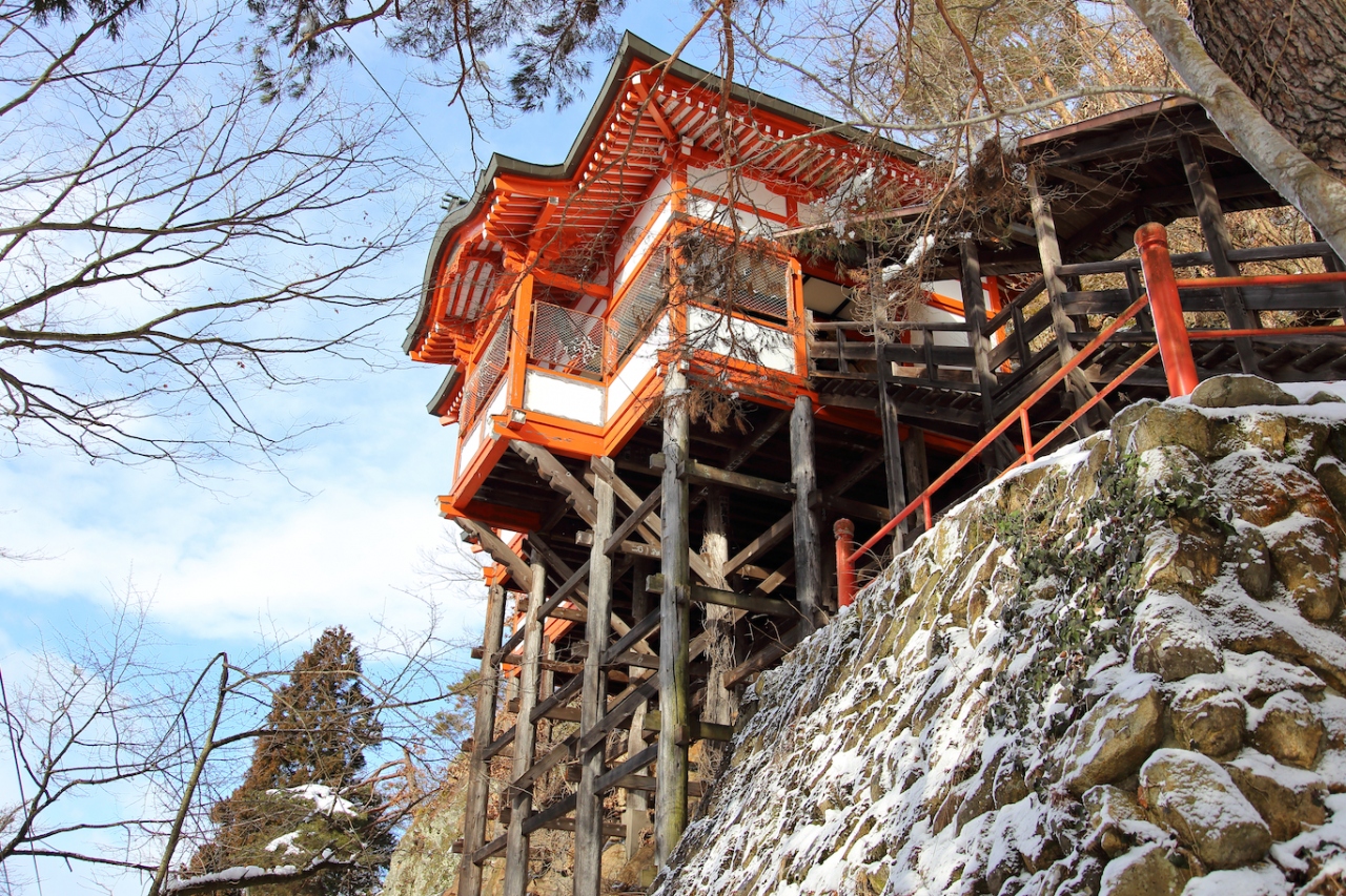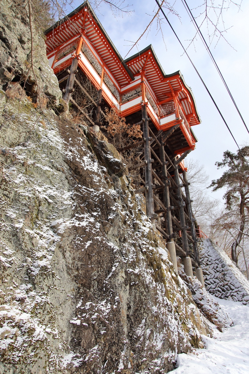 何時行っても良い場所ですが、一番のお勧めは冬の時期です。雪を被った堂宇と山道は美しく、魅了されます。1000段の階段に怖気づく方も居ると思いますが、競争では無いのですからのんびりと上っていけば良いのです。是非、地上の堂宇だけではなく、仁王門から先の堂宇を見て頂きたいです。特に冬場の五大堂からの眺めには圧倒されます。辿り着くまでに苦労しますが、その甲斐があるだけの絶景が楽しめます。
