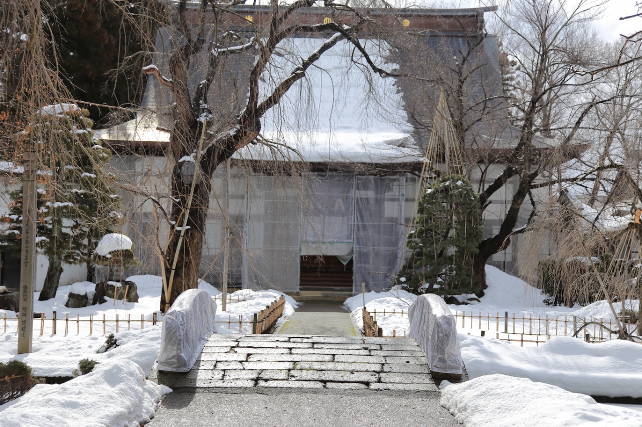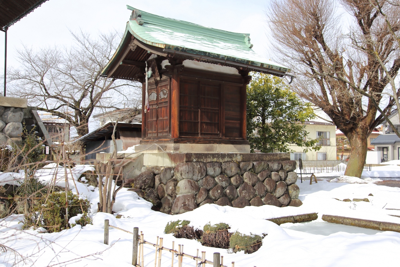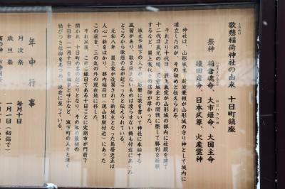 社殿は結構新しく、境内も小ぢんまりしていますが由緒は古く、最上氏の祖である斯波兼頼が建立したものだそうです。その後、山形城内に祀られていたそうですから、このくらいのサイズなのも納得です。実際、裏手には三の丸の土塁と堀の遺構が残っています。