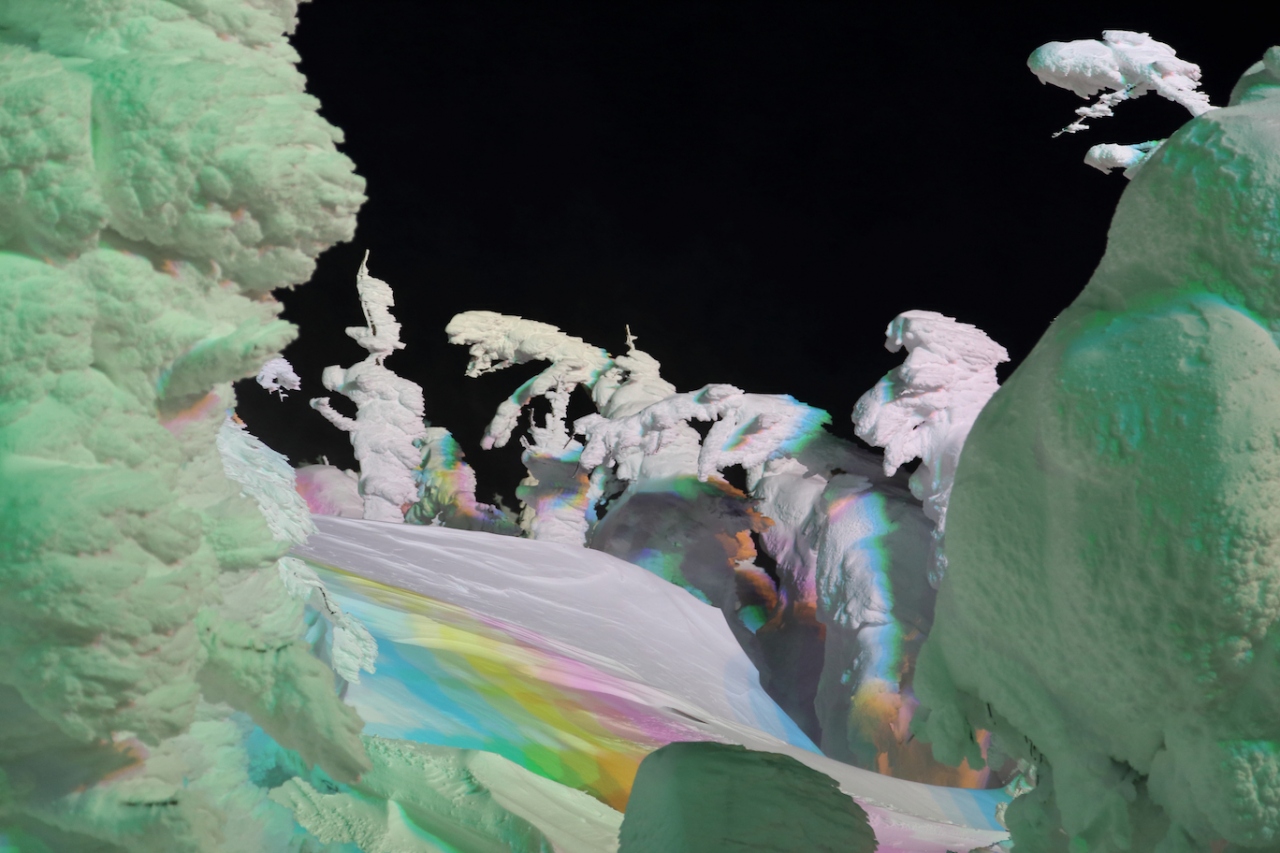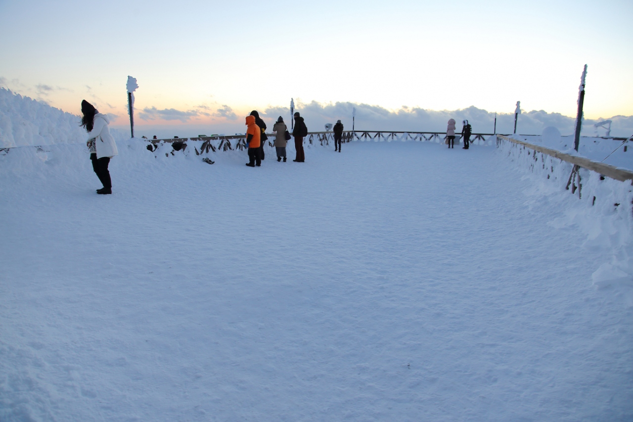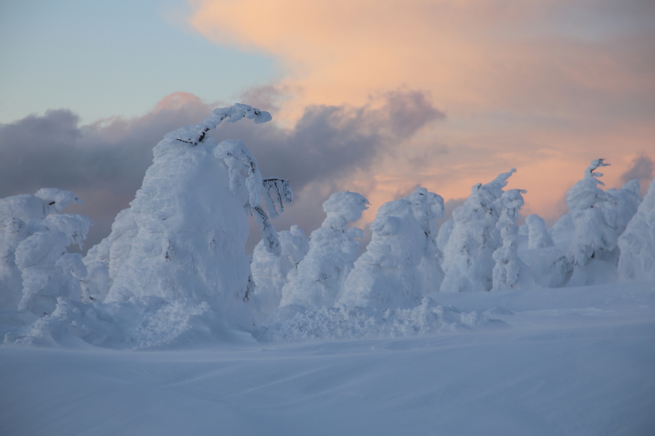 今回は夕焼けとライトアップを見る為に行きましたが、運良くくっきりとした樹氷群を見ることが出来ました。夕日に赤く照らされた樹氷群は美しく、また、ライトアップもモンスターぶりを際立たせていて、幻想的でした。是非一度は見て欲しい光景です。