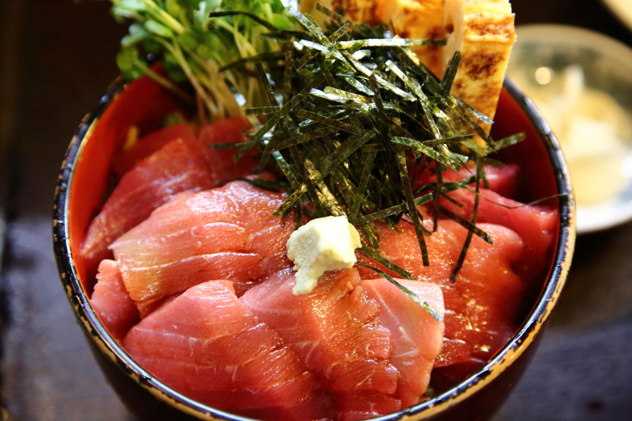 店内はカウンターと座敷になっています。座敷は大広間の他、少人数が入れる部屋に区切られているようで、幾つかのグループの方が利用されていました。かき揚げが有名なのは書いた通りですが、流石に食べきれる自信が無かったのと、かき揚げはランチ時間帯しかやっていないとのことだったので、まぐろ丼を頼みました。出てきたのを見ると、大きな丼にたっぷりとご飯が盛られ、その上にまぐろの刺身が14~15枚、その他に厚焼き玉子ものっていて、ボリュームたっぷりでした。ボリュームだけで味はまぁまぁ、という店も多いですが、こちらはそんなことは無く、味も大変に美味しかったです。ちょっと行き難いので観光の方にはお勧めし難いですが、もし自由に動ける手段があるなら行ってみて下さい。絶対に満足できると思いますよ。- 旅行時期