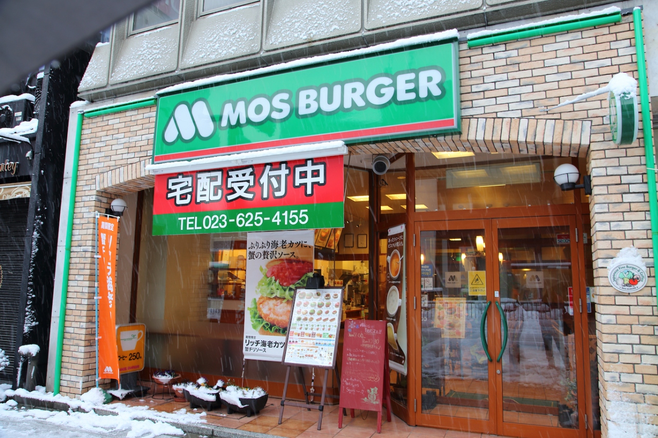 山形駅の近くにあるモスバーガーです。東口を出て真っ直ぐ4~5分歩けば着きます。