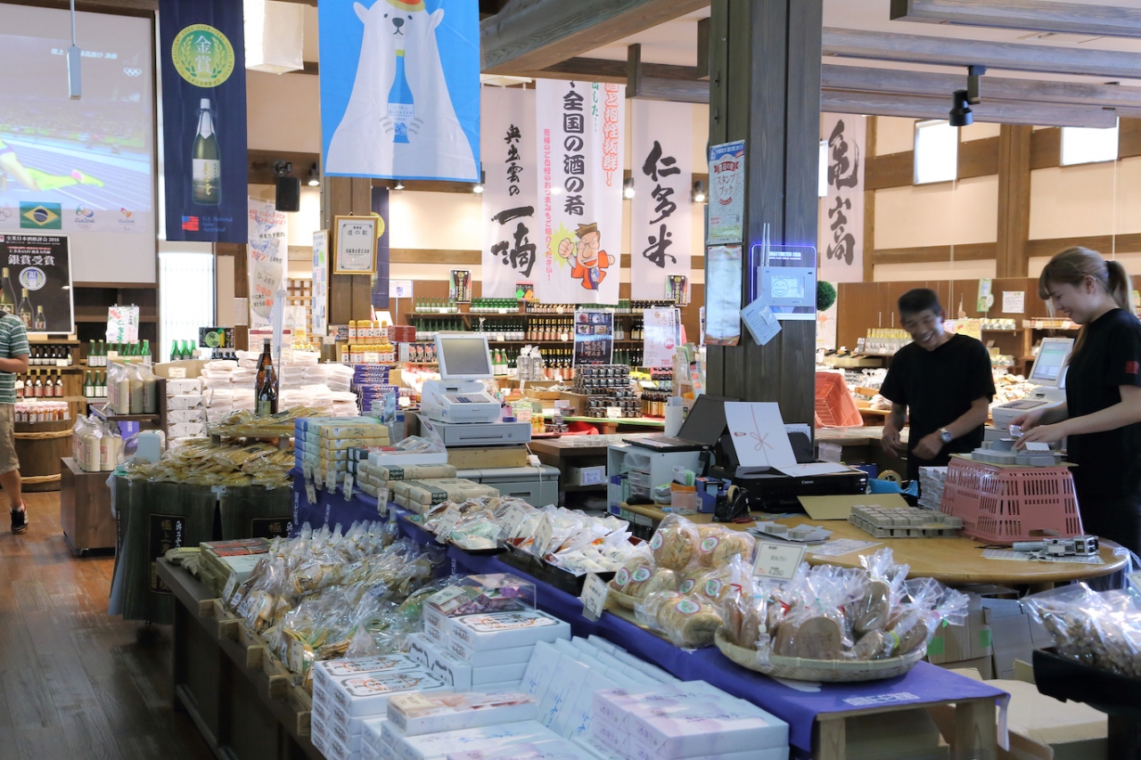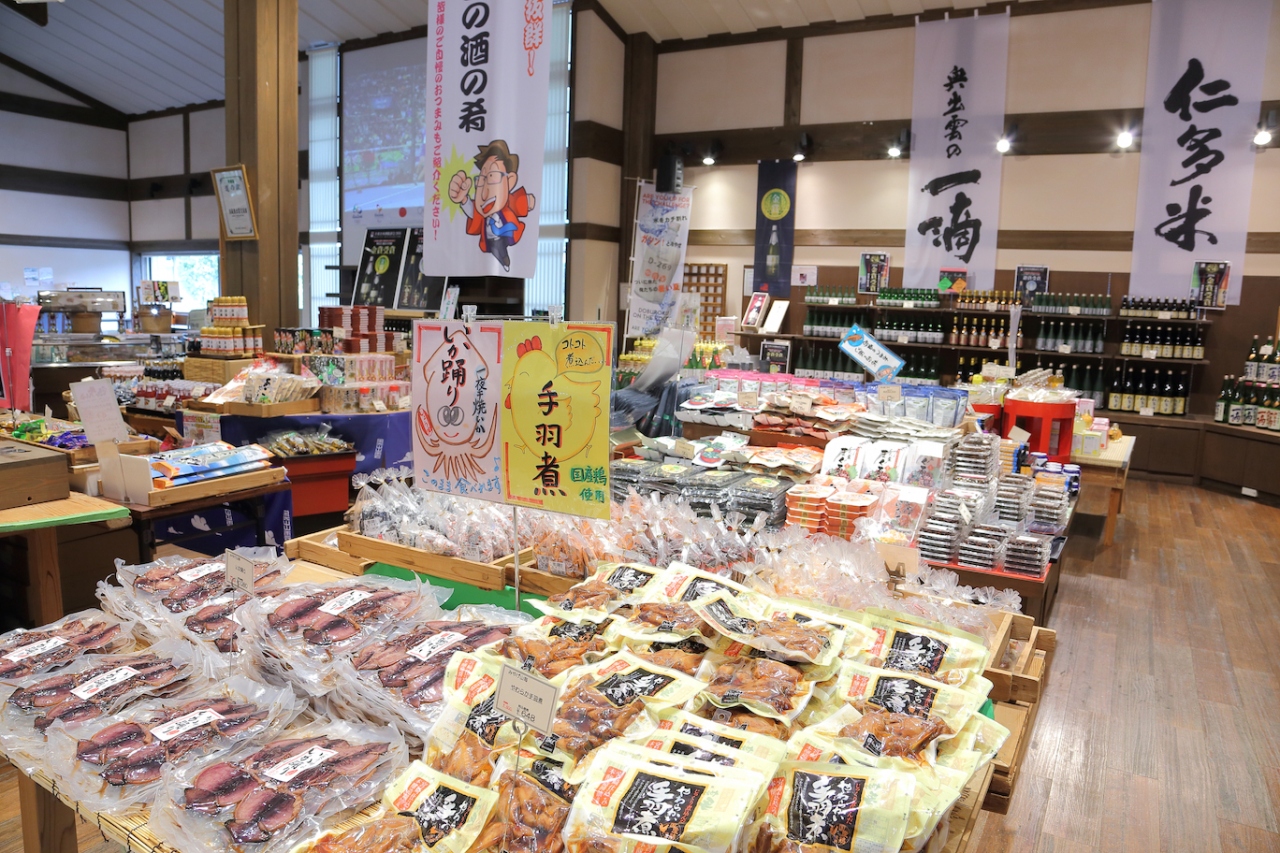中で販売されている商品はお酒と肴が殆どです。一般的なお土産も売られていますが、ごく少数です。また、お酒の試飲コーナーもあり、スタッフの方に言えば販売されている銘柄は大抵試飲できるようです。道の駅ですから乗用車で来ることが前提の筈なので、酒の試飲ができるのはどうかと思いますが。因みに、肴は出雲のものだけでなく、全国から取り寄せたものが販売されていました。