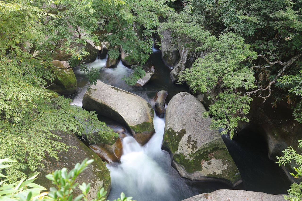 奥出雲町にある、国の名勝に指定されている渓谷です。こちらには宇根駐車場、下高尾駐車場、雨川駐車場の3つがありますが、宇根駐車場から往復、宇根駐車場から下高尾駐車場に抜けるのが一般的だと思います。山深い所なので車で行くのが一般的だと思いますが、バスで行くこともできます。奥出雲交通の三成・馬木線が通っていますので、そちらで行くことも可能です。但し、本数が少ないので注意してください。時刻は奥出雲交通のホームページで調べられます。因みに、この辺りはサイクリング事業を進めているようで、出雲三成で自転車を借りることもできますから、自転車で来ても面白いと思いますよ。私は自分の自転車で行きました。