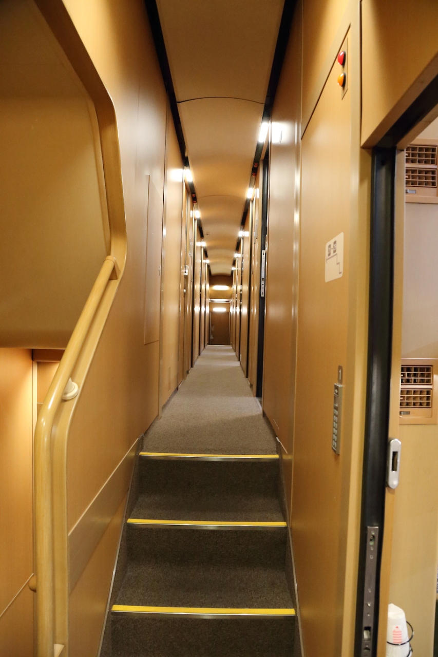 内装は木目調で、温かみを感じさせるものです。運行を開始してから暫く経ちますが、客車は清潔で、古さを感じさせません。今回、JR出雲市駅から東京駅まで乗りましたが、出雲市駅出発直後には日が落ちてしまうので、残念ながら車窓は楽しめませんでした。東京駅から出雲市駅に向う場合には倉敷を越えた辺りで日が昇る筈なので、車窓から宍道湖の眺めを楽しめると思います。