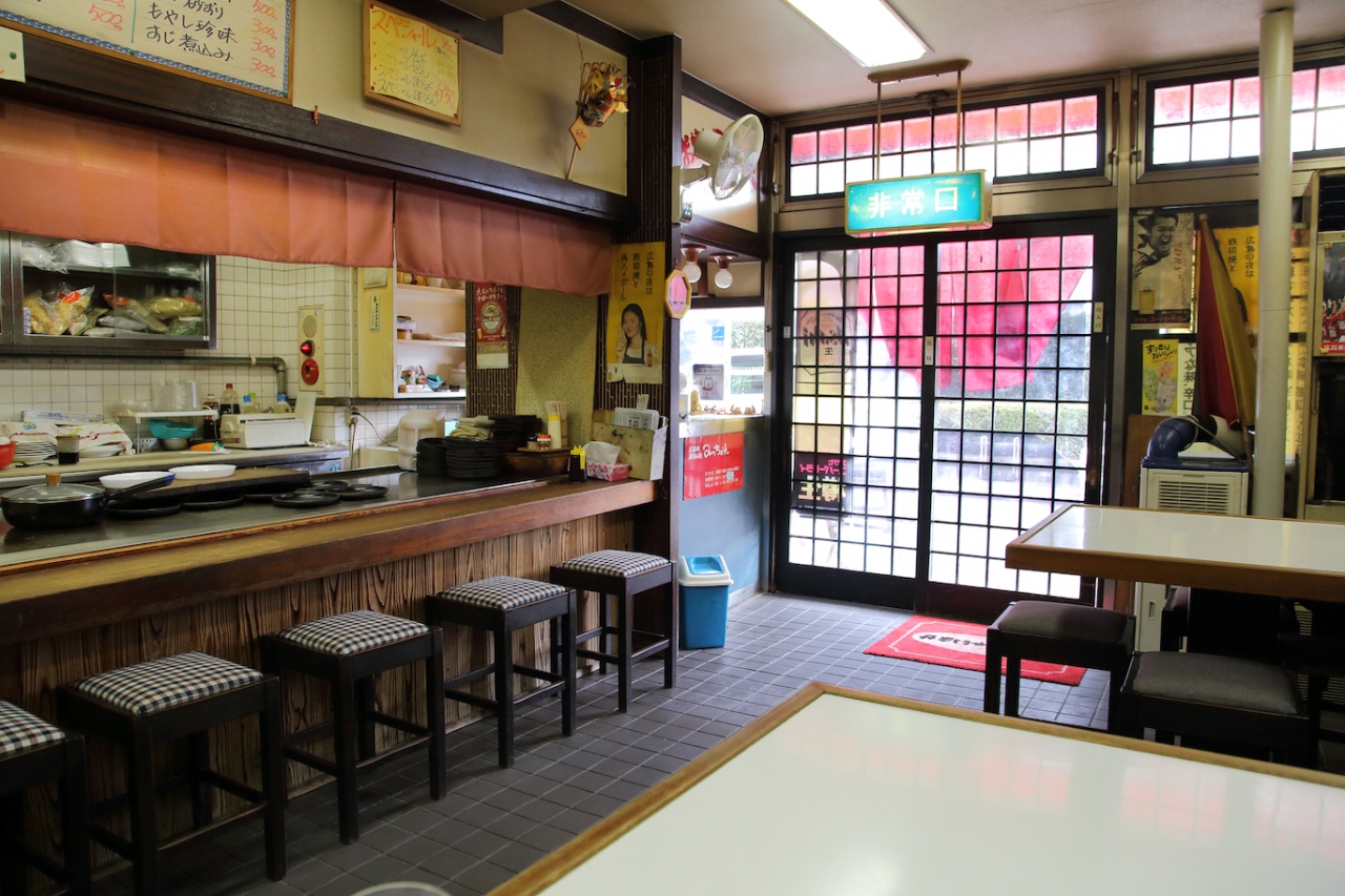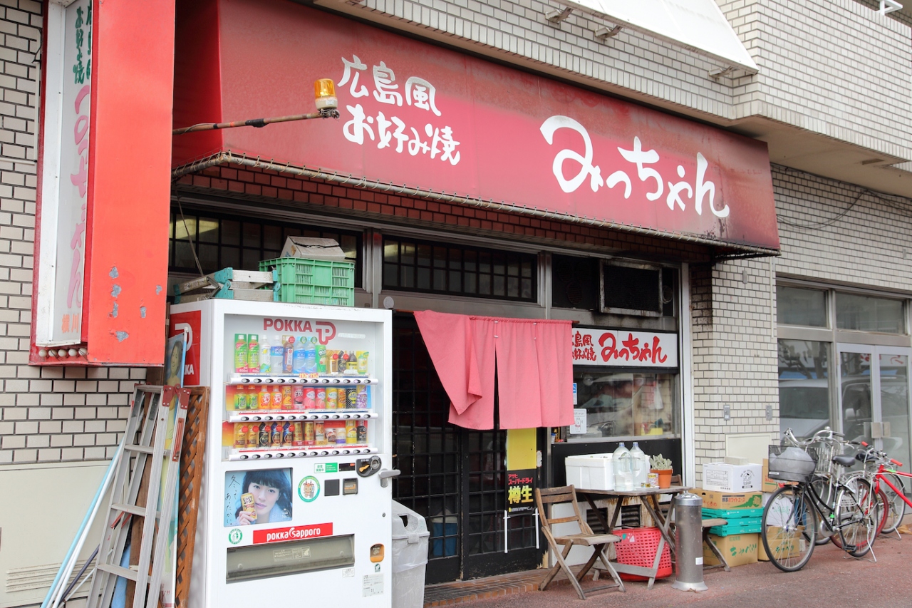 広島の横川駅近くにあるみっちゃんの暖簾分け店です。こちらの大将はみっちゃんで修行され、30年前に暖簾分けして貰って店を構えたそうで、結構な老舗です。行き方は簡単で、横川駅の北口を下りて、真正面のサンクスの方へ進んでください。ちょうど1つ奥の建物の1階にあるのが見えると思います。