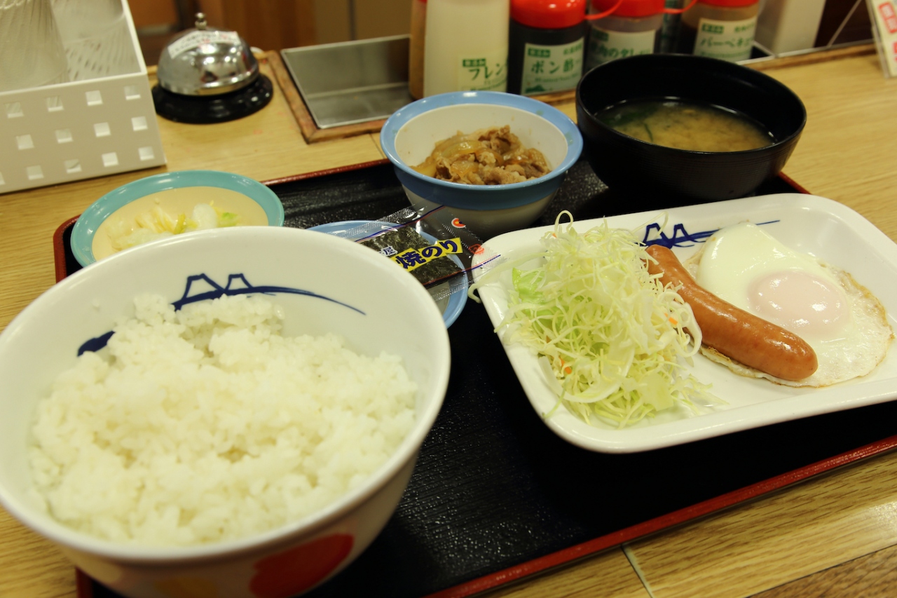店内もメニューも何処にでもある松屋です。特に変わったものはありません。味も当然変わりません。ですが、不案内な土地で朝から店を探し回るのは大変ですし、早朝ですと開いている店も限られます。そういう意味ではランドマークからも近く、非常に重宝する店舗だと思います。ソーセージエッグ朝食を頼みましたが、安心の味で普通に美味しく頂きました。- 旅行時期
