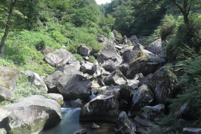 出雲国風土記によれば、この辺りに住んでいた玉日女をワニが慕い、夜な夜な通っていたらしいのですが、玉日女がそれを嫌がり、巨岩で川を塞いだということです。ワニが慕う、ということから転じて鬼の舌震、という名前になったそうです。面白い伝承ですが、確かにそこら中に巨岩が転がっているので、この川を遡上するのは大変でしょうね。
