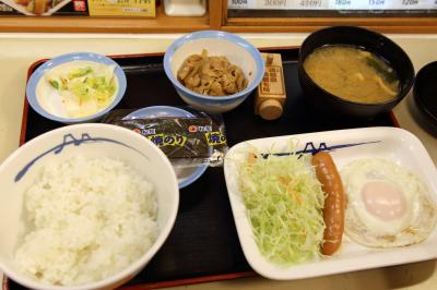 宿泊した宿が素泊まりだったので、朝食を取るために訪問しました。この辺りには『すき家』や『やより軒』といった店舗が集まっていて何処も朝食を提供していますが、個人的に松屋の朝食が好きなので松屋に行きました。
