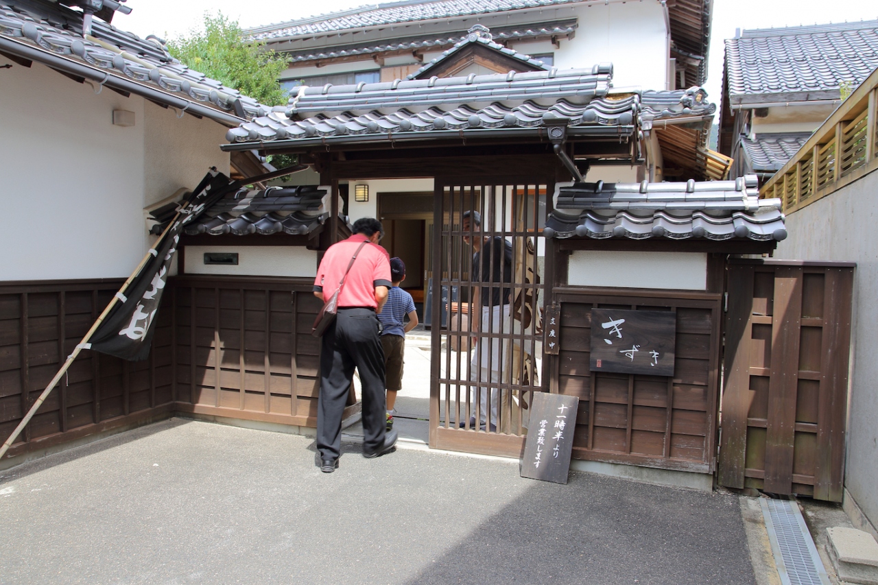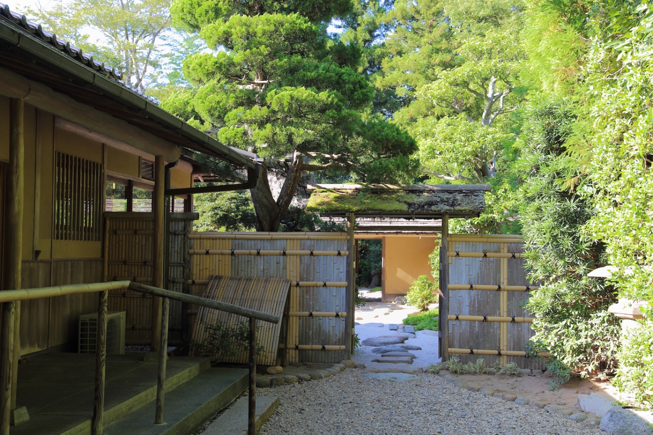塩見縄手の北側にある茶室です。塩見縄手の看板のある交差点から北に向うと、左手側にあります。バスで行くなら、レイクラインに乗って塩見縄手で降りると良いでしょう。